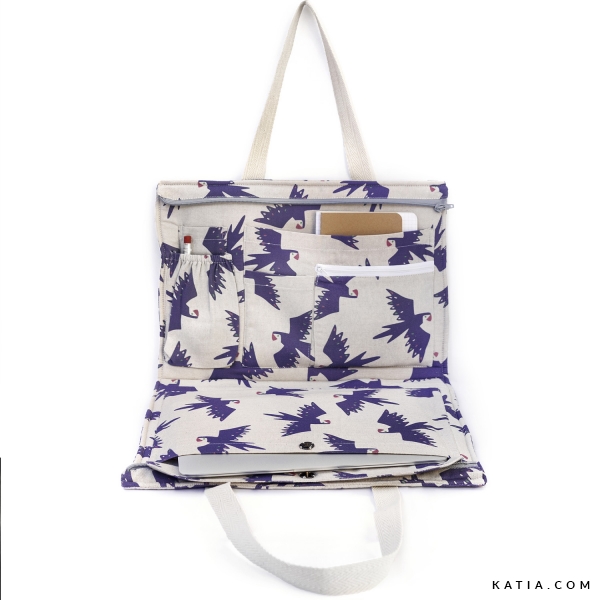 Protect and carry your laptop or netbook comfortably with this protective bag made with your own hands. Follow the sewing pattern to create a laptop cover with handles, zip and various pockets inside to hold the charger and organize your stationery and documents. Use any variety of our canvas fabrics to make this bag extremely hard-wearing.