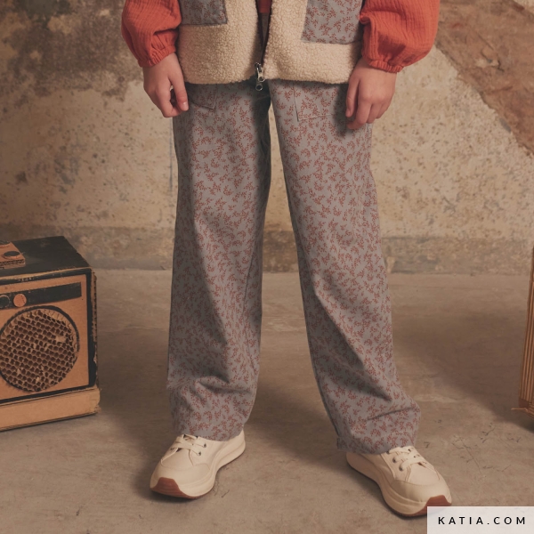 Transform your little one’s wardrobe with a touch of comfort and style! Discover this sewing pattern for straight-leg pants in children’s sizes with an elastic waistband and pockets, perfect for any season. This versatile design, featured in the 2024/2025 Fall-Winter Dance sewing pattern magazine by Katia Fabrics, suits a wide range of fabrics, from our stretch corduroy to stretch velvet, woven fabrics like Viyella or flannel for a warmer finish, or even viscose and Techno Polyester from Katia Fabrics for elegant drape. Don’t wait any longer! Get your magazine today and start sewing these essential pants for your children’s wardrobe.