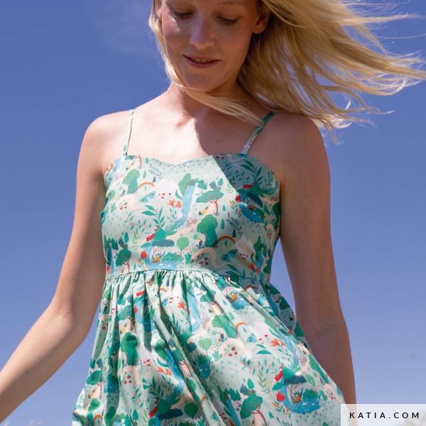 Discover how easy it is to make this midi dress with straps and shirred back. Ideal for making with your sewing machine in several of our new spring-summer fabrics: lyocell, viscose, denim, metallic, etc.