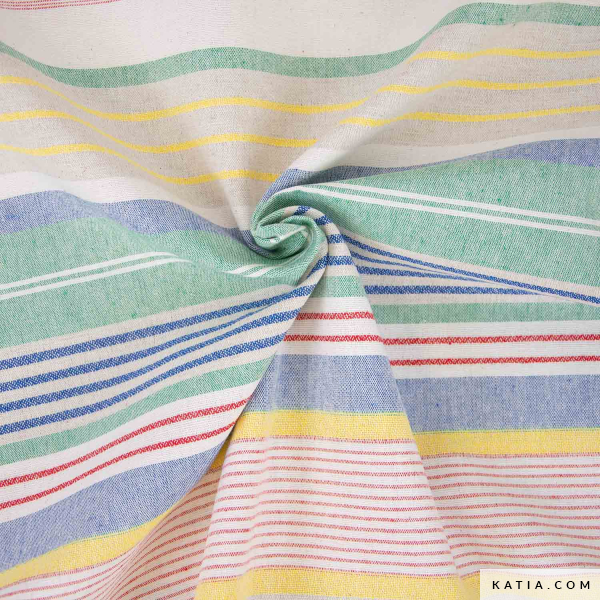 Fill your projects with coolness and originality with this Salinas recycled canvas. A strong structured fabric decorated with a cheerful multicolor stripe design. Perfect for making handbags, backpacks, home accessories or garments full of character. Choose this recycled canvas and add a sustainable touch to your creations.