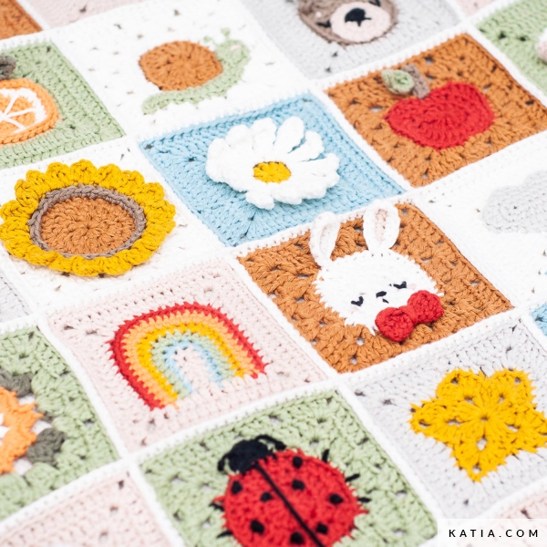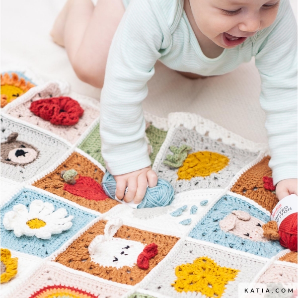 Start: March 15, 2023. Duration: 5 weeks. Project: Blanket consisting of 36 3D granny squares with 24 different motifs. The Mini Explorer CAL Kit contains 34 balls of Katia United Cotton, in 12 different colors, to crochet the Mini Explorer blanket, designed by @gallimelmas, during the next 2023 Katia CAL. You can look for and join our Crochet-Along Katia group on Facebook to get the free pattern available in 6 languages: English, Spanish, French, Dutch, German and Italian. Each week, we will share part of the pattern with charts and helpful videos in the Facebook group. Size: 75 x 75 cm approximately.
