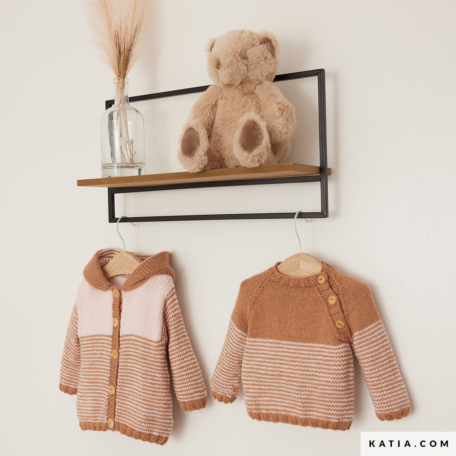 Discover this striped sweater pattern from the Katia Baby 110 magazine. Knit a soft and comfortable garment with Katia New Ultrasoft wool, an ideal choice for delicate skin. This design with raglan sleeves features a convenient front opening with 3 buttons. Create special moments by knitting this sweater for your baby!