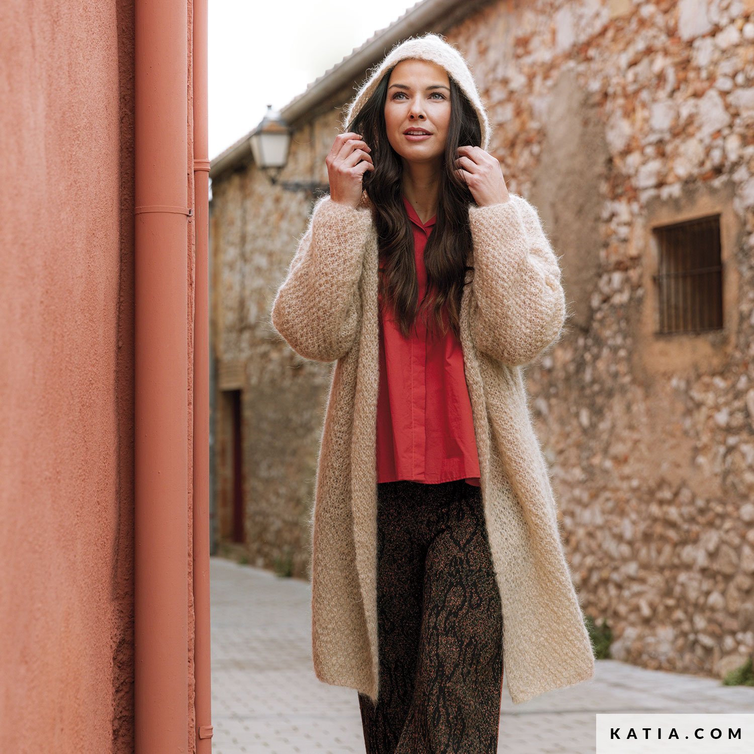 You will love this long hooded cardigan if you enjoy creating different looks with your staple pieces. It is a light garment knit with Katia Ingenua that is extremely versatile thanks to its simple and youthful design. Easily knit an open 3/4 length jacket and think of it as an accessory for your day-to-day outfits. A must knit for wardrobes with character!