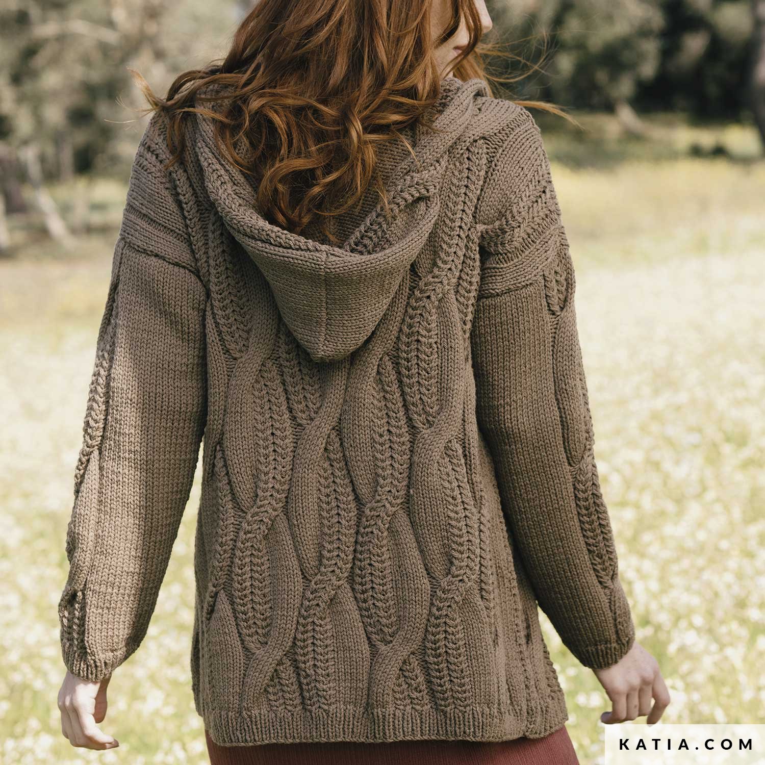Give your outfits a folky vibe with this hooded cardigan knit with Arles Merino. With this knitting pattern you will enjoy a large, cabled design on the body and sleeves. A spectacular classic design that contrasts with the care-free look that wearing it open provides.