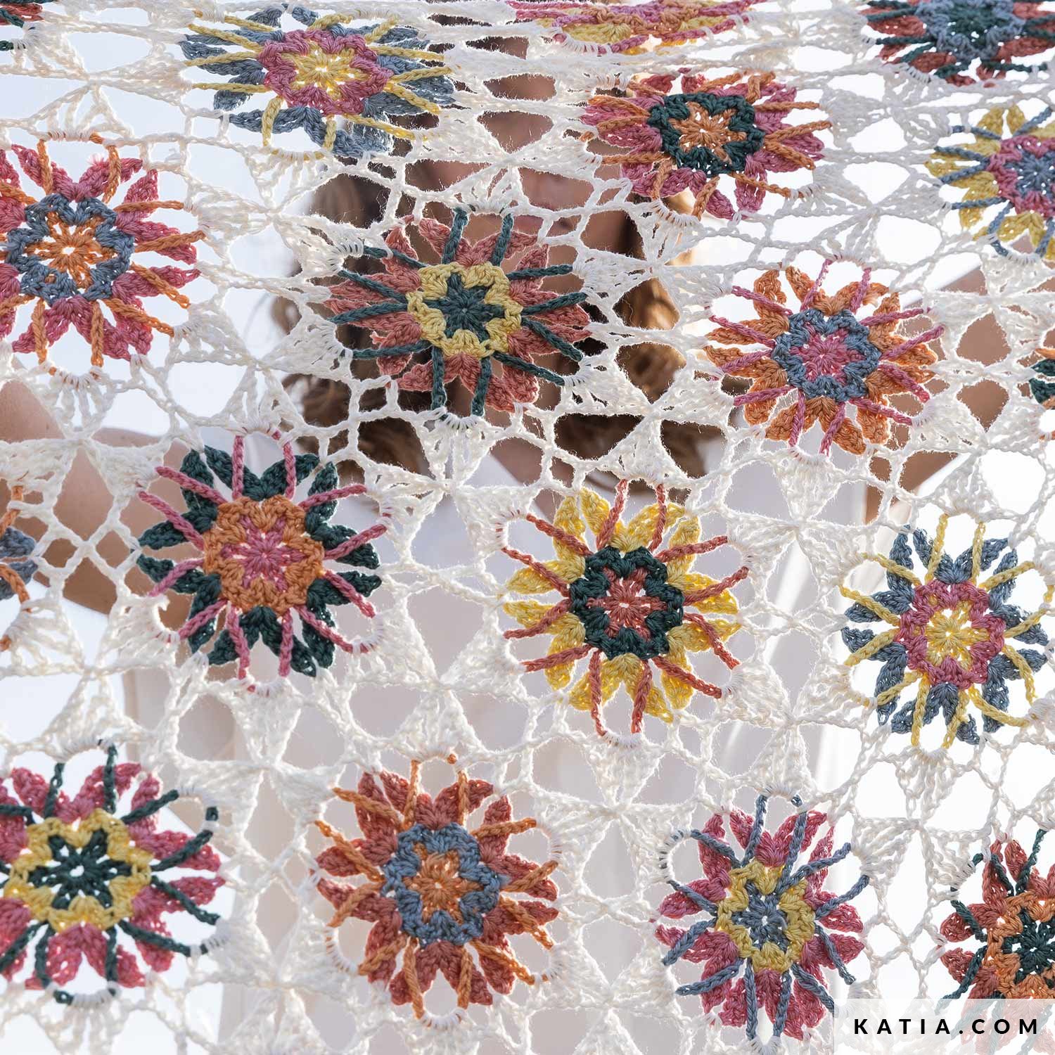Thanks to this crochet shawl pattern by the talented crochet designer @attylovesforcrochet, you can create a beautiful floral design. This colorful pattern includes written instructions and clear charts to crochet and join the flowers that make up this shawl. Crochet a unique and vibrant accessory with your own hands. Start your project today and show off your creativity!