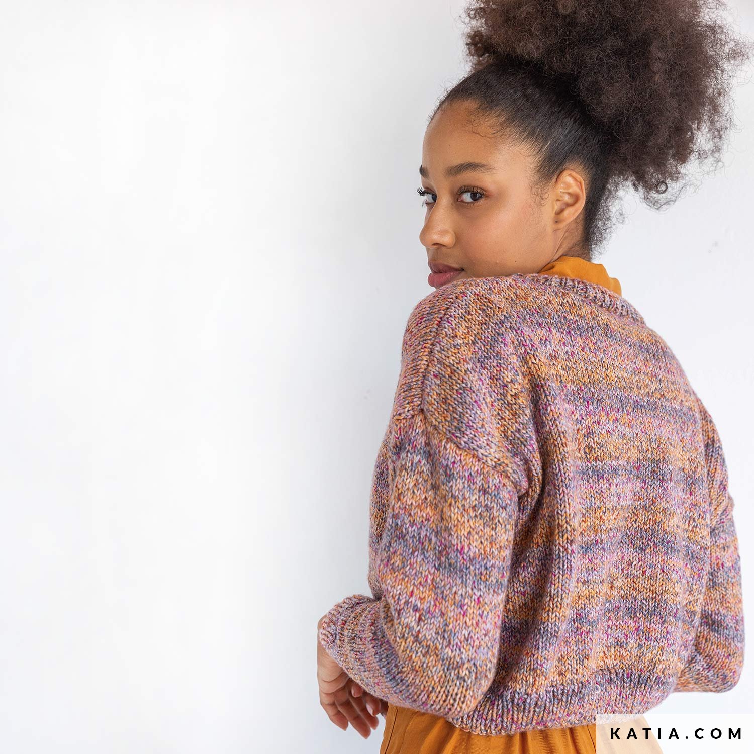Beginner, take off like a rocket and level up knitting your first sweater with just one megaball of Katia Rocket. Follow this free pattern to knit a cropped sweater with long sleeves. Enjoy a unique result, thanks to the special colorways of Rocket yarn, blending multicolor heathered yarn with muted striped effects.