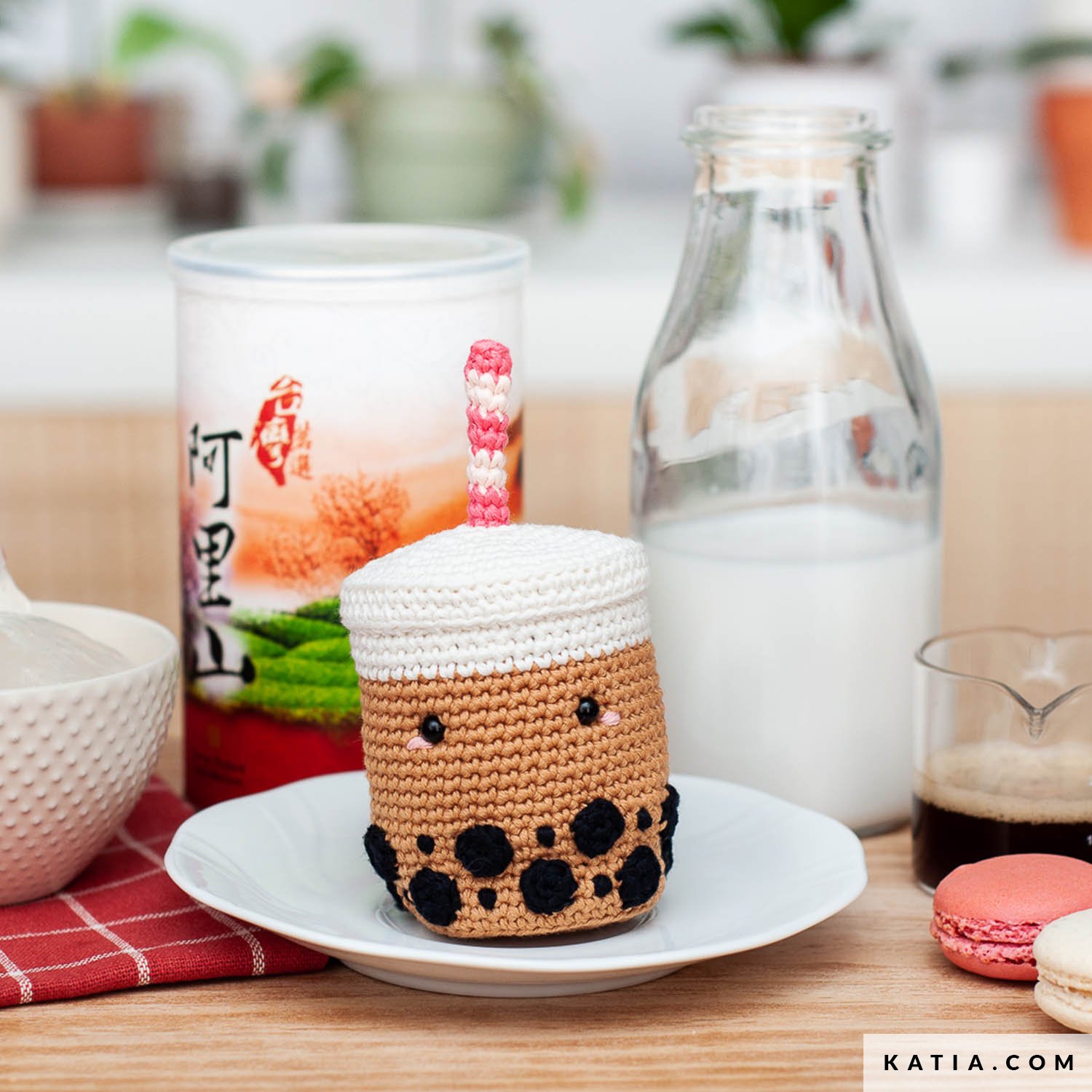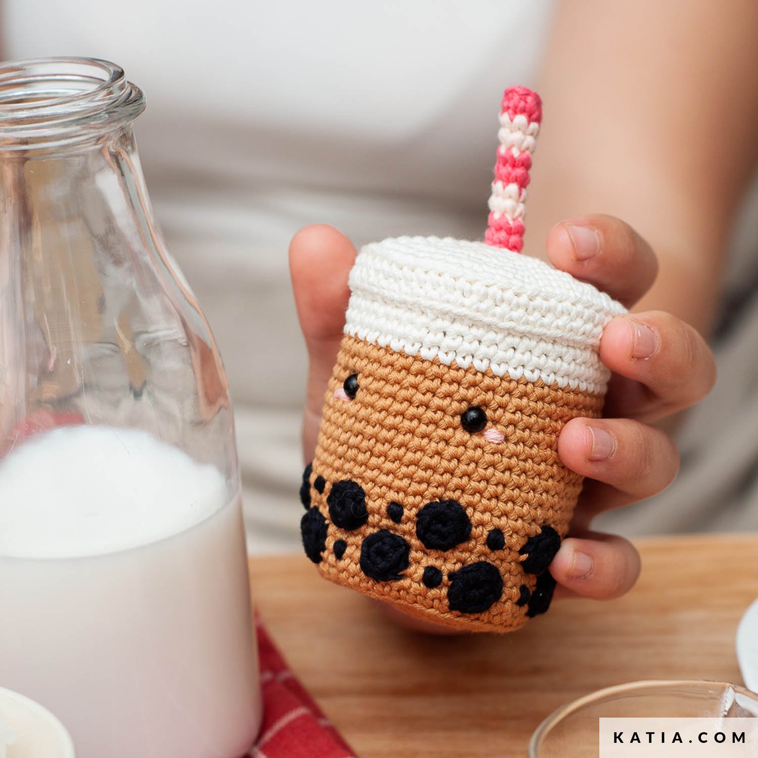 The Bubble Tea by Gallimelmas is the sweetest and bubbliest amigurumi version of the famous milk tea with tapioca pearls. With its striped straw and black bubbles imitating the tapioca pearls, this Snack Time character stands out for its charm and originality. Crocheted with Katia Amigurumi, a 100% cotton double-twist yarn that’s easy to work with, it combines soft shades that evoke the creamy color of tea. Its cute expression and rounded shape make this amigurumi a refreshing and fun creation, perfect for those who love making characters with an international touch.