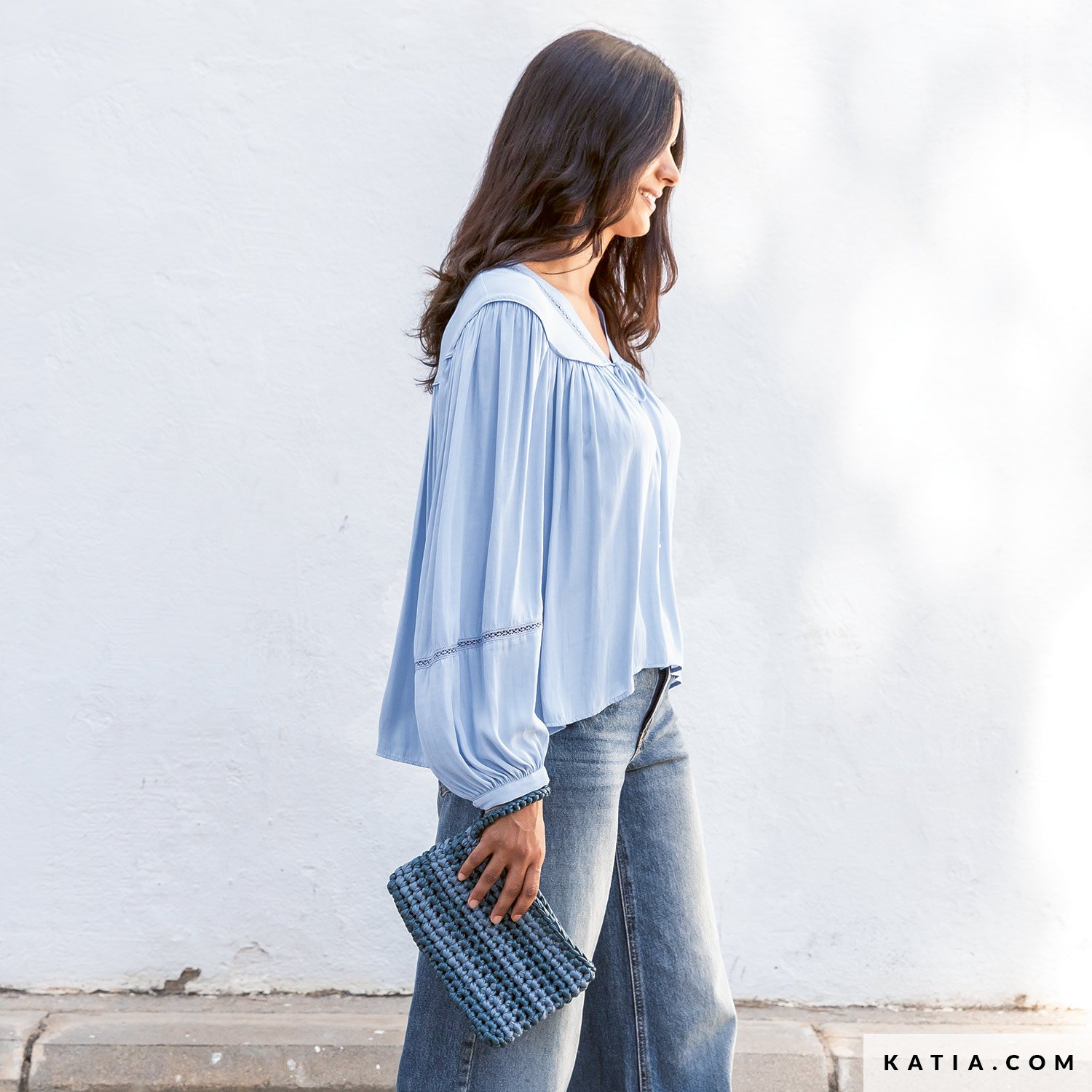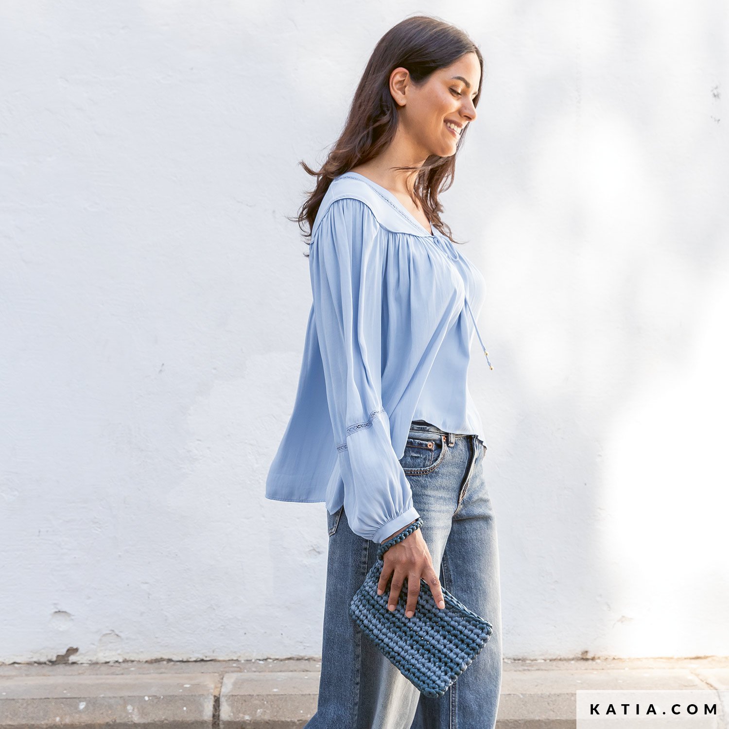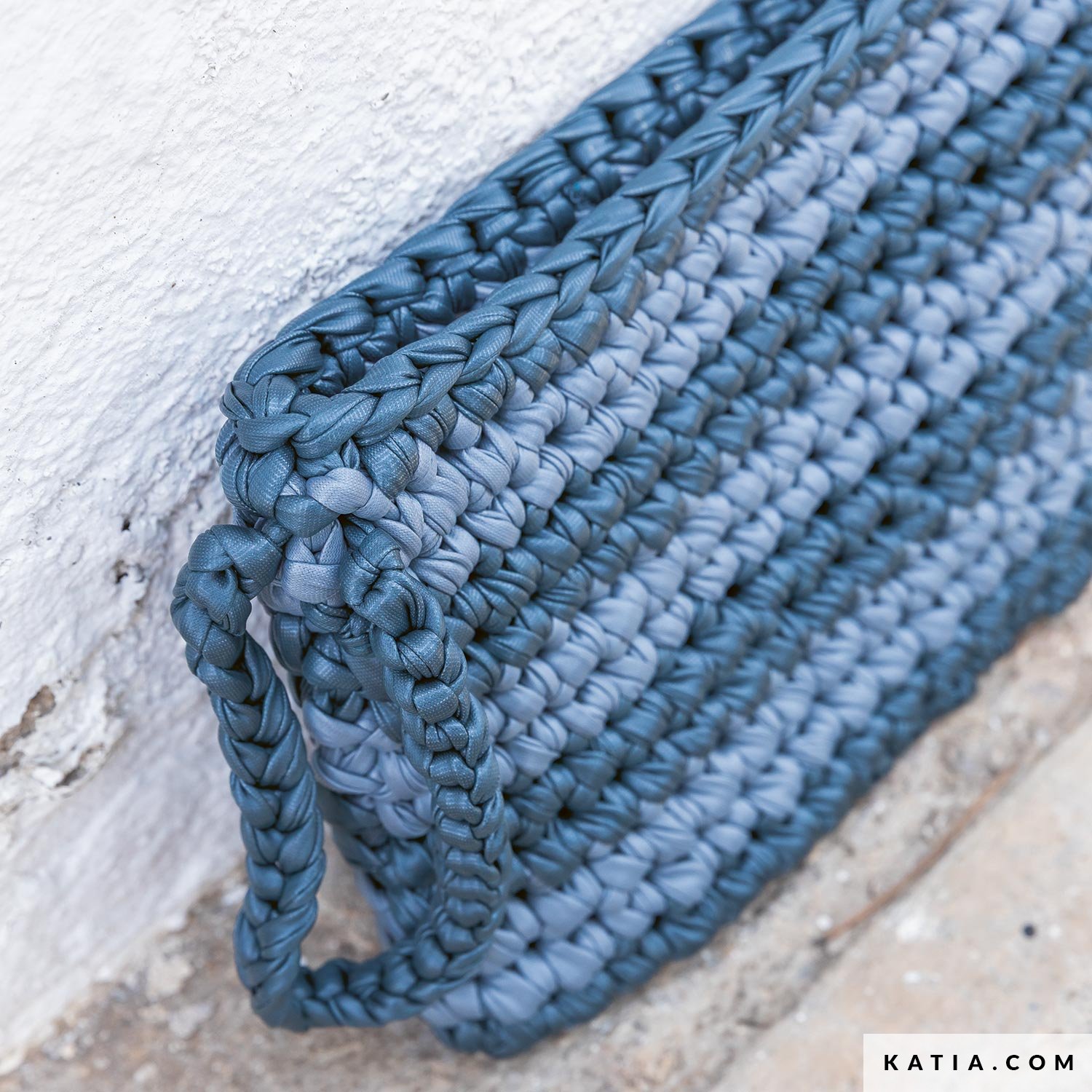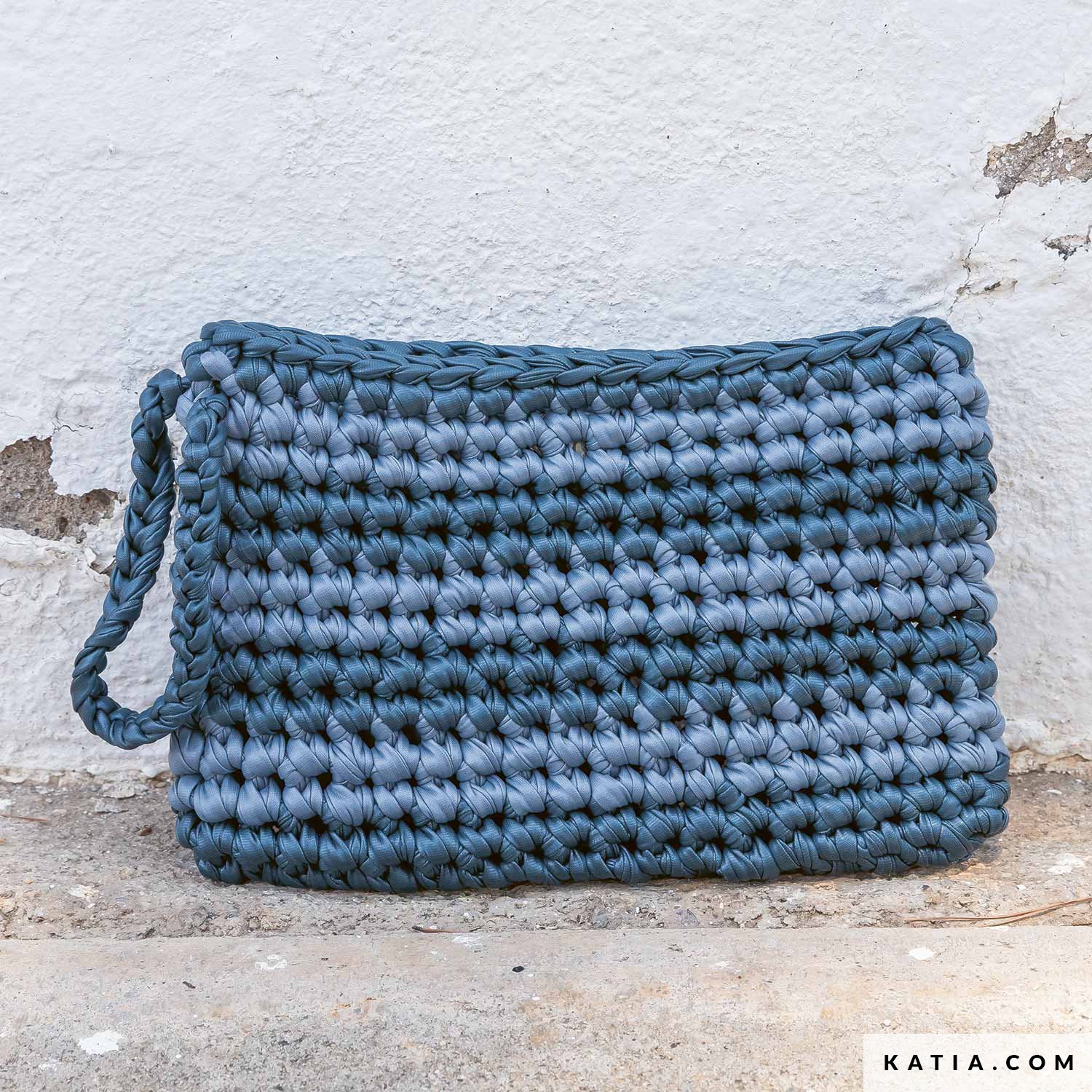 A striped crochet clutch worked with a 9-mm hook and Katia Corium in two colors. The stripe pattern creates a bold, modern contrast, with a finish that recalls the look of leather. Free pattern available as a PDF at katia.com. Choose your favorite shades and make a clutch full of character!
