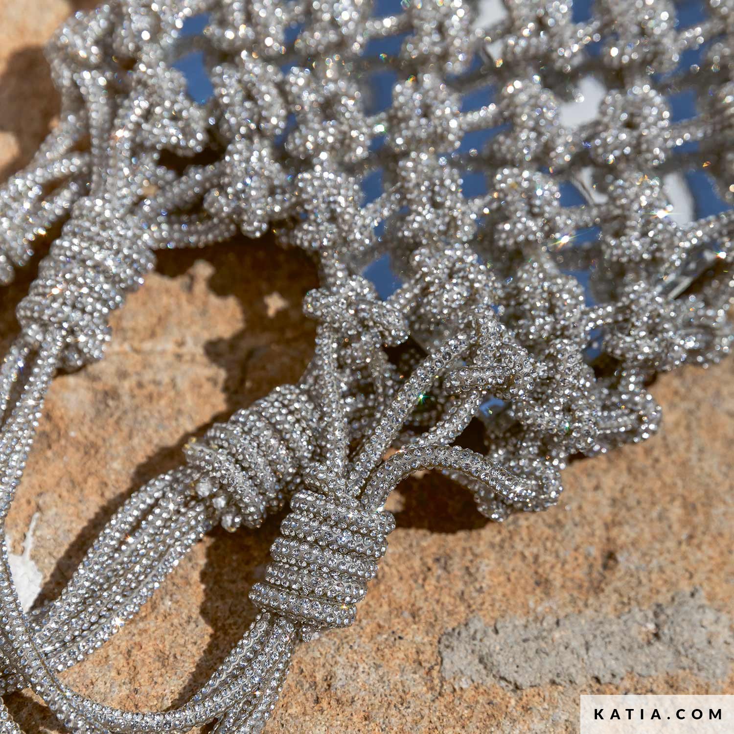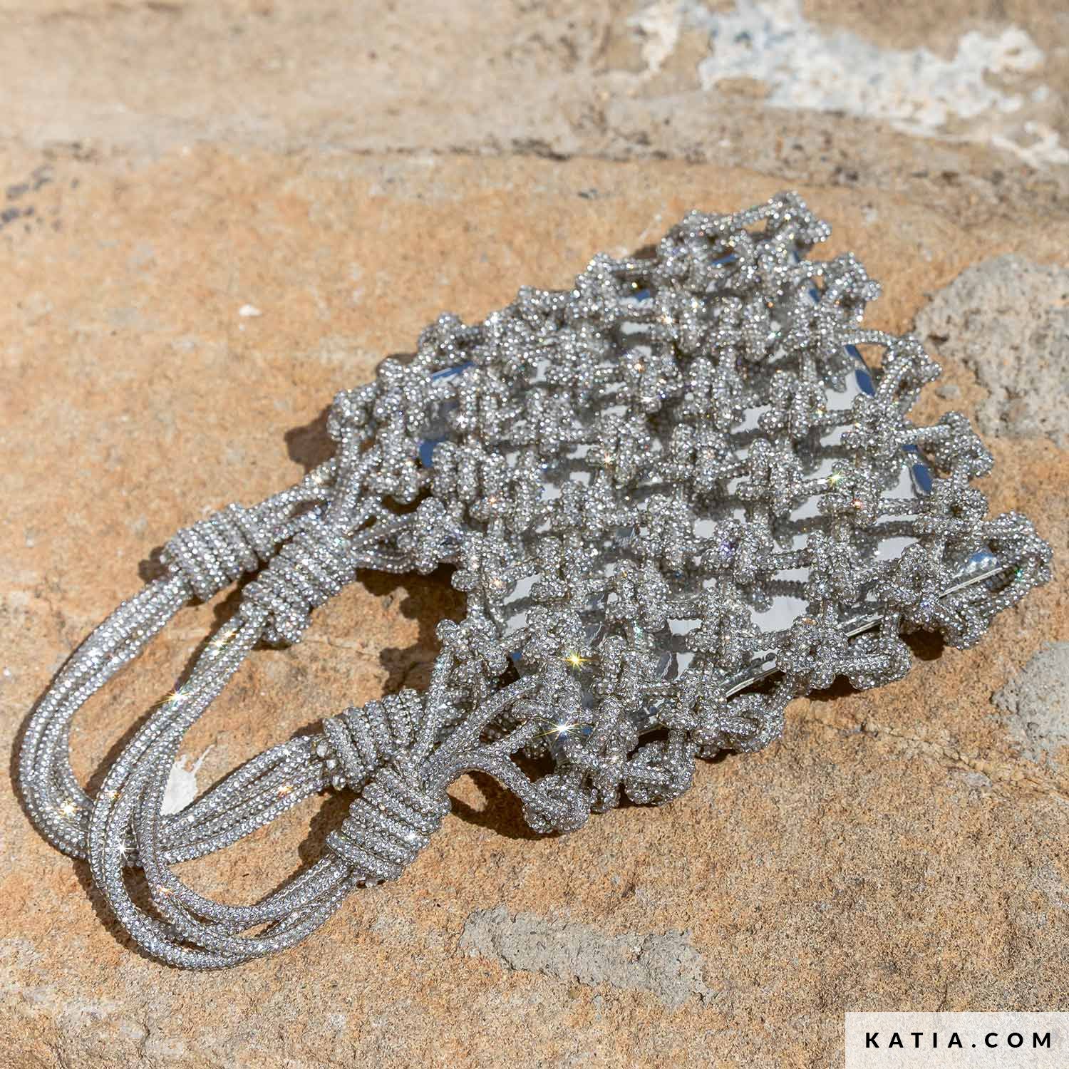 Create a sparkly party accessory with Katia Diamante and the video tutorial by Buyi Macramé Art. This mini bag is made using simple macramé knots, while the crystal-covered cord adds a stunning, luminous finish. The result is a glamorous little bag, perfect for elevating any outfit with zero effort.