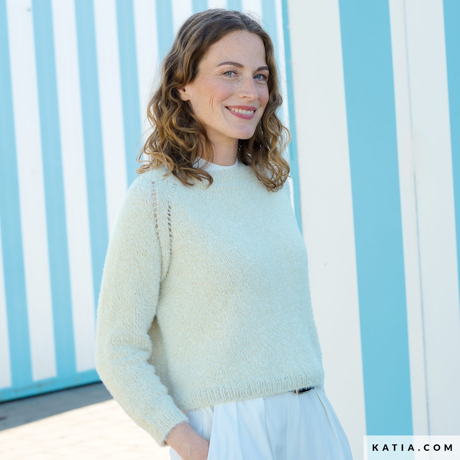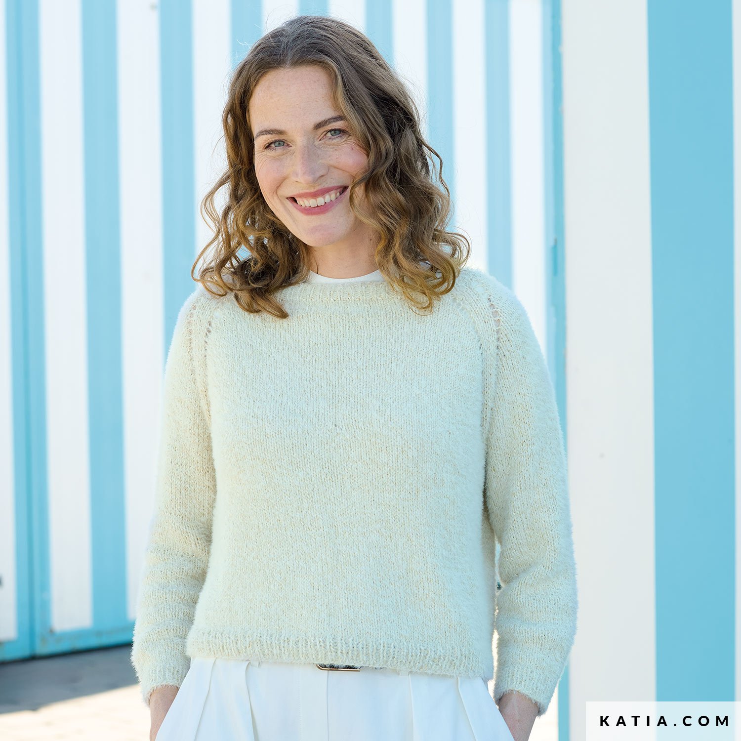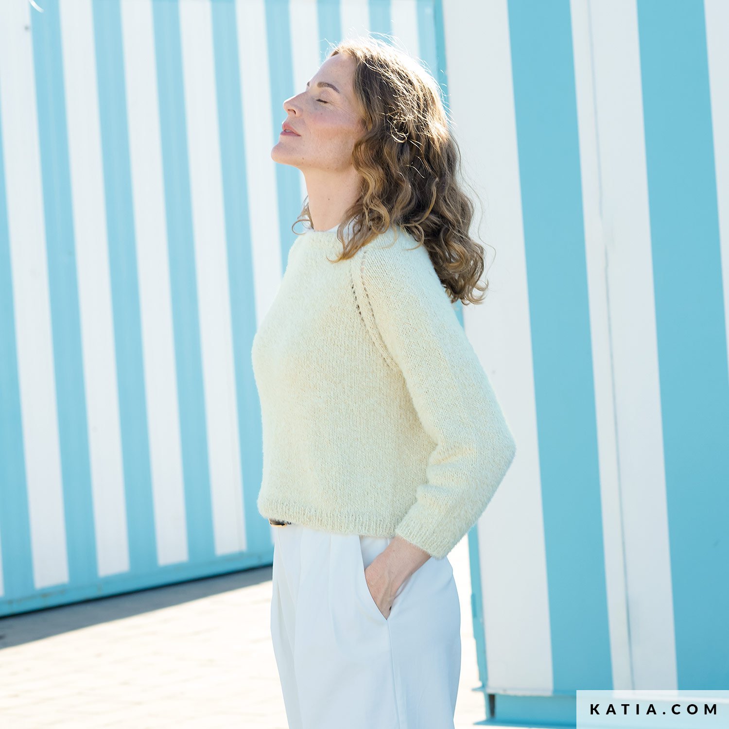 A top-down sweater pattern—worked in the round—that you’ll wear all year. The lace raglan sleeves add interest without complexity, and the round neckline flatters any look. Concept Silky, with bourette silk, provides natural softness and exceptional drape. Find the pattern at katia.com and in the All Seasons 7 magazine. Start today and build a durable handmade wardrobe.