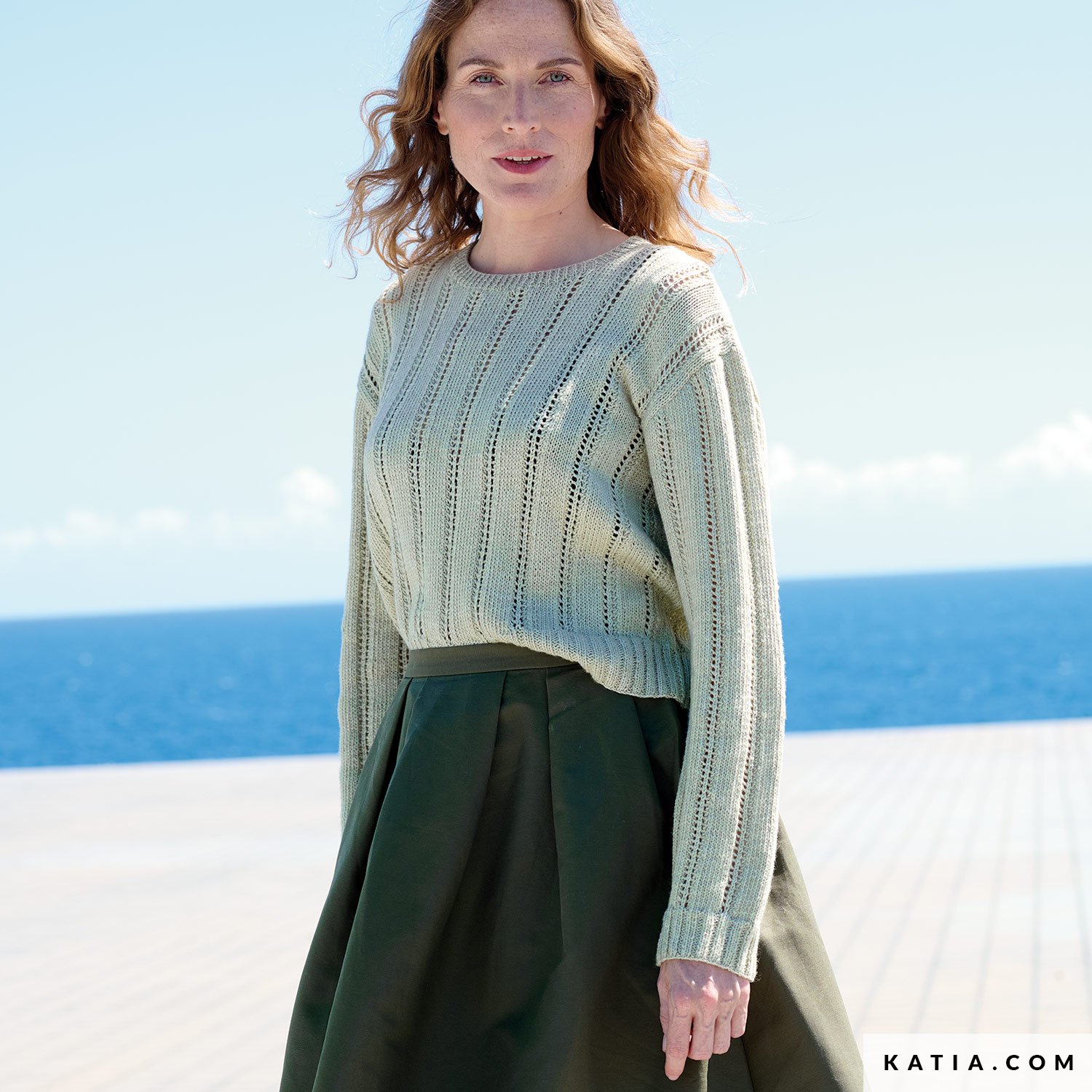 A balance of texture and simplicity. This knitted sweater combines lace and plain sections to create a beautiful dual textured effect on the body and sleeves. The result is a lightweight, comfortable garment with a handmade feel. Concept Onda adds soft volume, lightness, and a wonderfully pleasant touch on the skin. Available in the All Seasons 7 magazine and as a PDF at katia.com. Try a unique project and enjoy the pleasure of making with your hands.