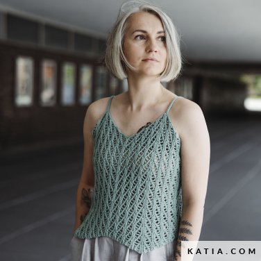 Discover this beautiful short-sleeved sweater pattern, knitted with Katia Panama, a soft 100% cotton yarn. Its original design combines different stitches and lace details that provide lightness and style. Learn to follow charts and enjoy creating a unique summer garment to pair with your favorite skirts or shorts.