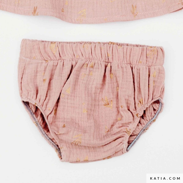 Modelo sencillo de braguita de bebé o cubre pañales fruncido para coser tanto con telas planas como elásticas. Un patrón de costura básico para coser una y otra vez a juego con blusas o camisas.