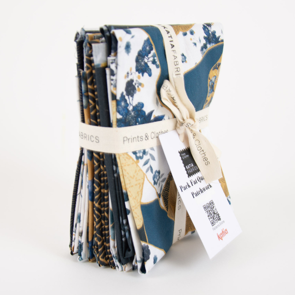Descubre la elegancia y el arte del Kintsugi con nuestro pack de 9 telas Fat Quarters Kintsugi Patch de Katia Fabrics. Este conjunto incluye 9 piezas de tela de 45 x 55 cm cada una, con un diseño inspirado en la antigua técnica japonesa de reparar cerámica con resina y polvo de oro. Los estampados presentan patrones geométricos, líneas doradas y colores sofisticados que evocan la belleza del Kintsugi. Tela fabricadas de 100% algodón y con un peso de 120 g/m². Estas telas son perfectas para proyectos de patchwork, como colchas, cojines, bolsas y otros accesorios. La combinación de colores y estampados asegura que cada creación sea única y elegante. Además, el pack viene cuidadosamente atado con un lazo de algodón de Katia Fabrics, listo para regalar o usar en tus proyectos. Explora los patrones de costura de las revistas de Katia Fabrics y los patrones online disponibles en Katia.com para encontrar ideas y modelos que complementen este exquisito pack de Fat Quarters Kintsugi Patch y crea piezas que celebran la belleza en la imperfección.