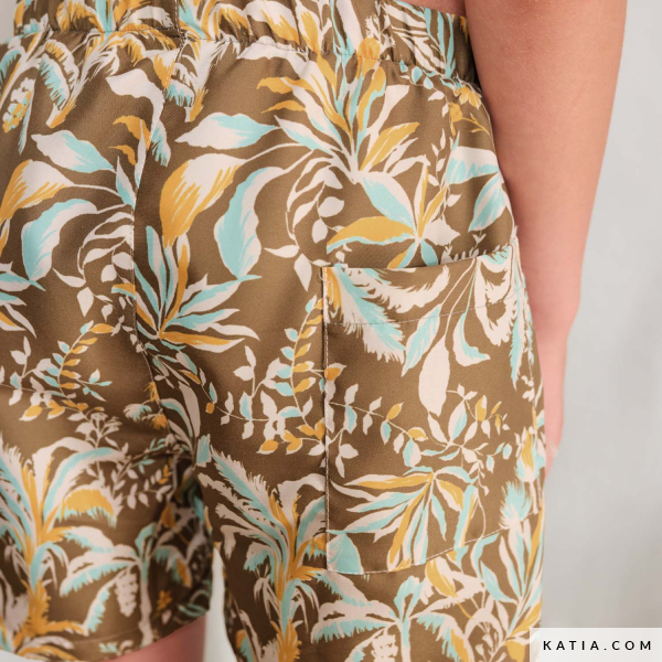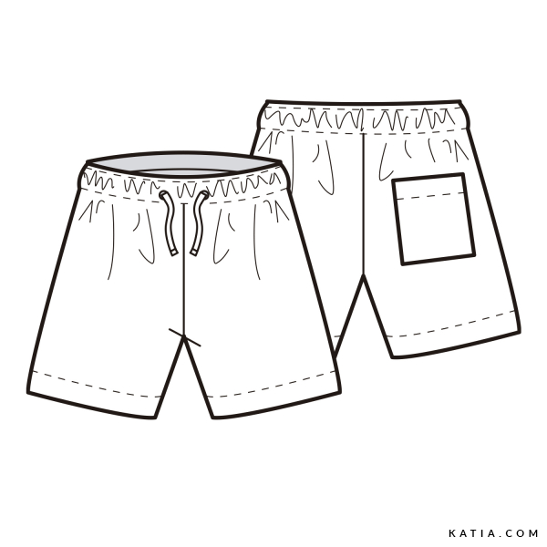 Confecciona un bañador de niño con este patrón de costura de Katia Fabrics, ideal para piscina y playa. El diseño incluye cintura elástica con cordón y bolsillo trasero, asegurando un ajuste cómodo y práctico. Recomendado para coser shorts de baño con el tejido de baño de secado rápido de Katia Fabrics, disponible original y divertidos estampados con colores veraniegos. Una costura fácil y útil para el armario de verano de tu peque.