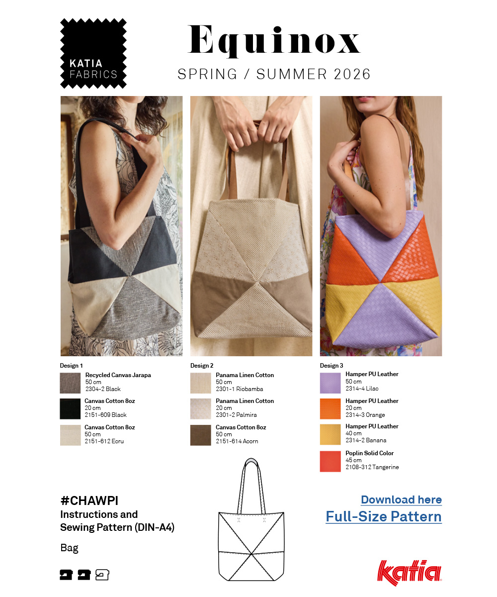 Cose un bolso tipo tote con piezas geométricas (diseño CHAWPI) usando nuestra polipiel texturizada Hamper PU Leather, resistente, flexible y fácil de coser con máquina doméstica. Nivel: fácil–intermedio.