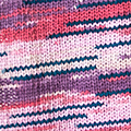 Hilo tipo cinta para tejer con agujas del 5 alegres vestidos y tops juveniles. Disponible en estampados de 5 colores de ciclo largo con inserciones de color negro o más oscuro que aparecen y desaparecen a lo largo del ovillo. Teje a punto jersey para conseguir un efecto de geometrías asimétricas. Descubre qué se esconde en cada ovillo y crea prendas únicas y coloridas. Teje un top original con dos ovillos Meraki o un divertido vestido de niña con solo un ovillo.