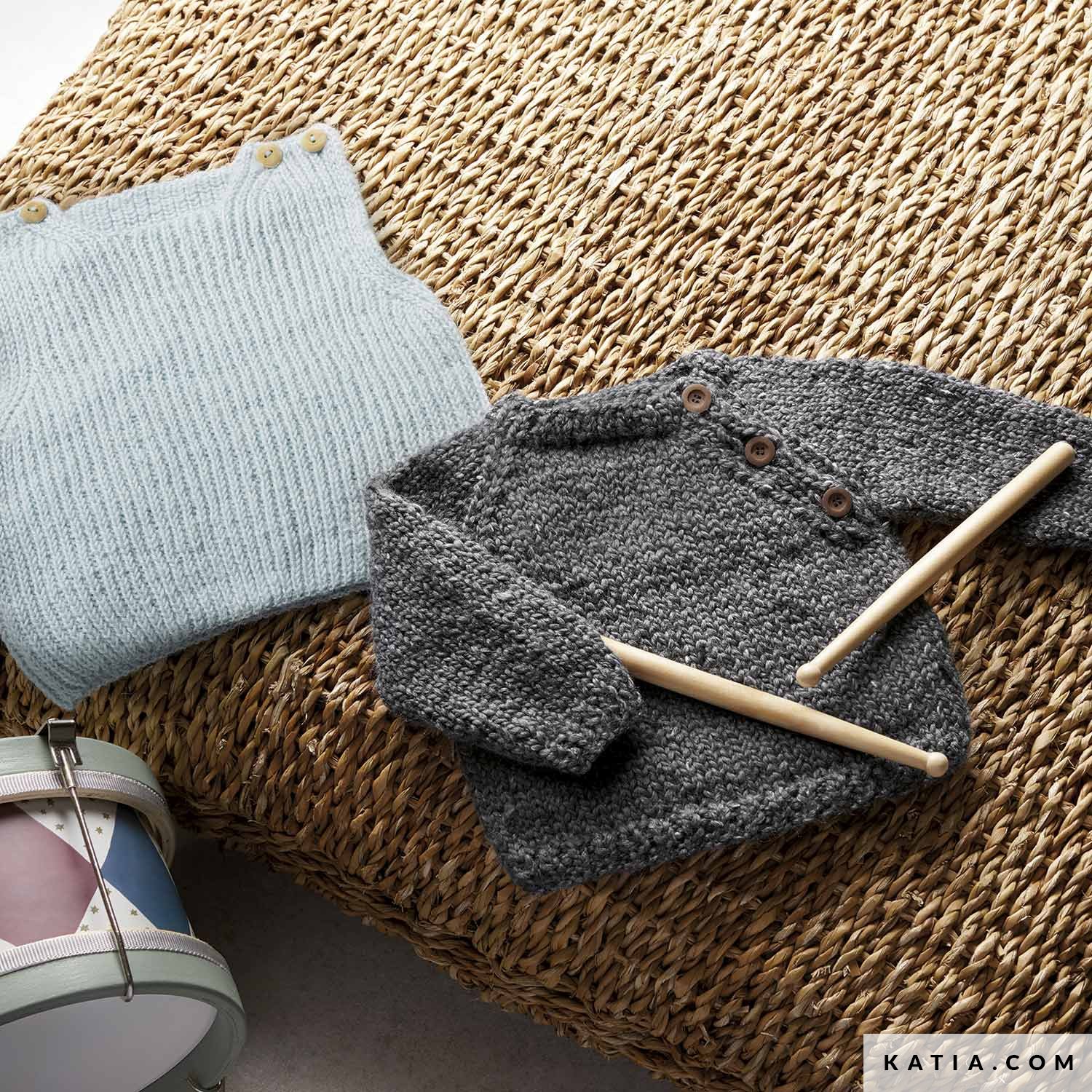 Teje con Alpaquina y este patrón fácil un chaleco de bebé con botones en los hombros. Escoge el color que más te guste y relájate tejiendo un jersey sin mangas, desde la talla 3 hasta 24 meses, con un sencillo diseño de punto inglés.