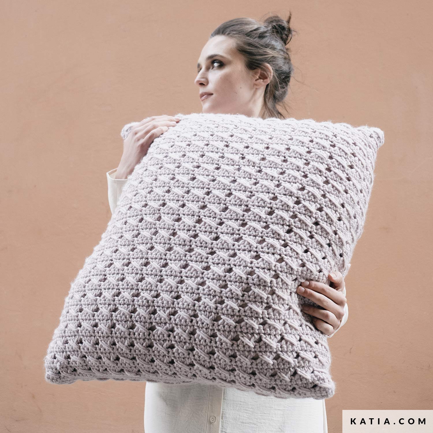 ¡Adorna cualquier rincón de tu hogar con este hermoso maxi cojín! Realizado con Super Merino, una lana de grosor intermedio perfecta para aprender a tejer, este cojín cuadrado grande es un complemento espectacular por su tamaño.