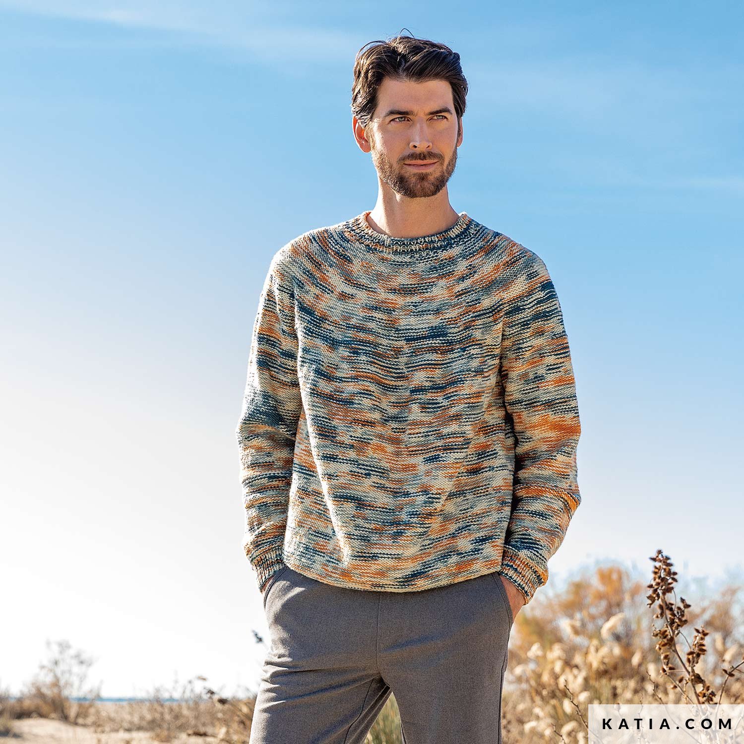 Atrévete a tejer con agujas circulares con este patrón de jersey de hombre bottom-up en Arles Merino Color. Este diseño circular con canesú redondo y tejido a punto jersey revés en circular es perfecto para dar color a tu día. Utiliza la lana francesa multicolor Katia Arles Merino Color y combínalo con tus jeans o pantalones chinos para un look divertido y básico. Disponible en PDF en katia.com y en la revista Katia Essentials 114.