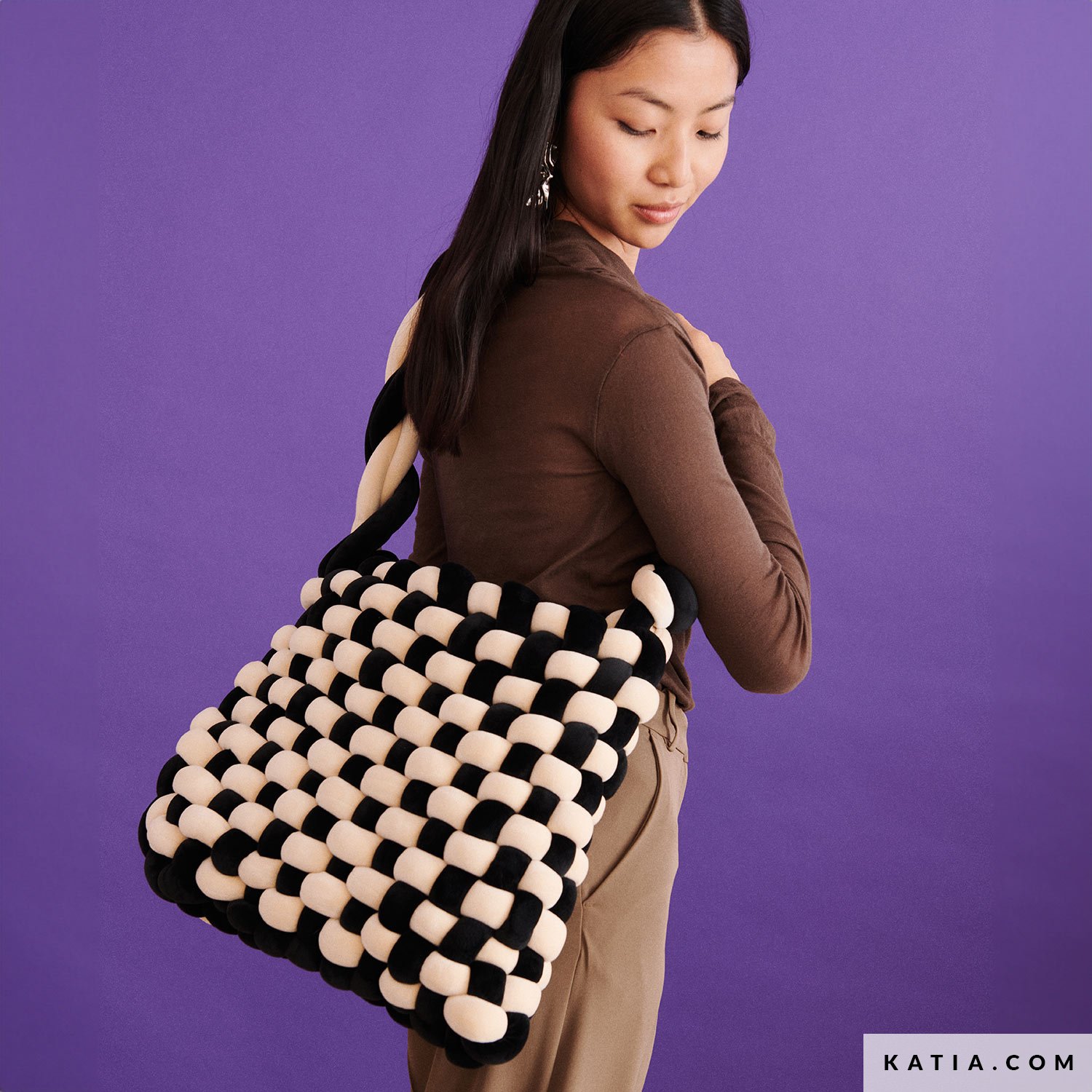 ¡Diseña un bolso espectacular con tus manos! Con tus 2 colores favoritos de WOW Velvet, teje este bolso bicolor en punto tafetán y sin agujas. Sigue el paso a paso de nuestro videotutorial para crear el nuevo complemento indispensable para tus outfits de invierno. ¡Descubre los colores de WOW Velvet y comienza a crear tu bolso perfecto ahora!