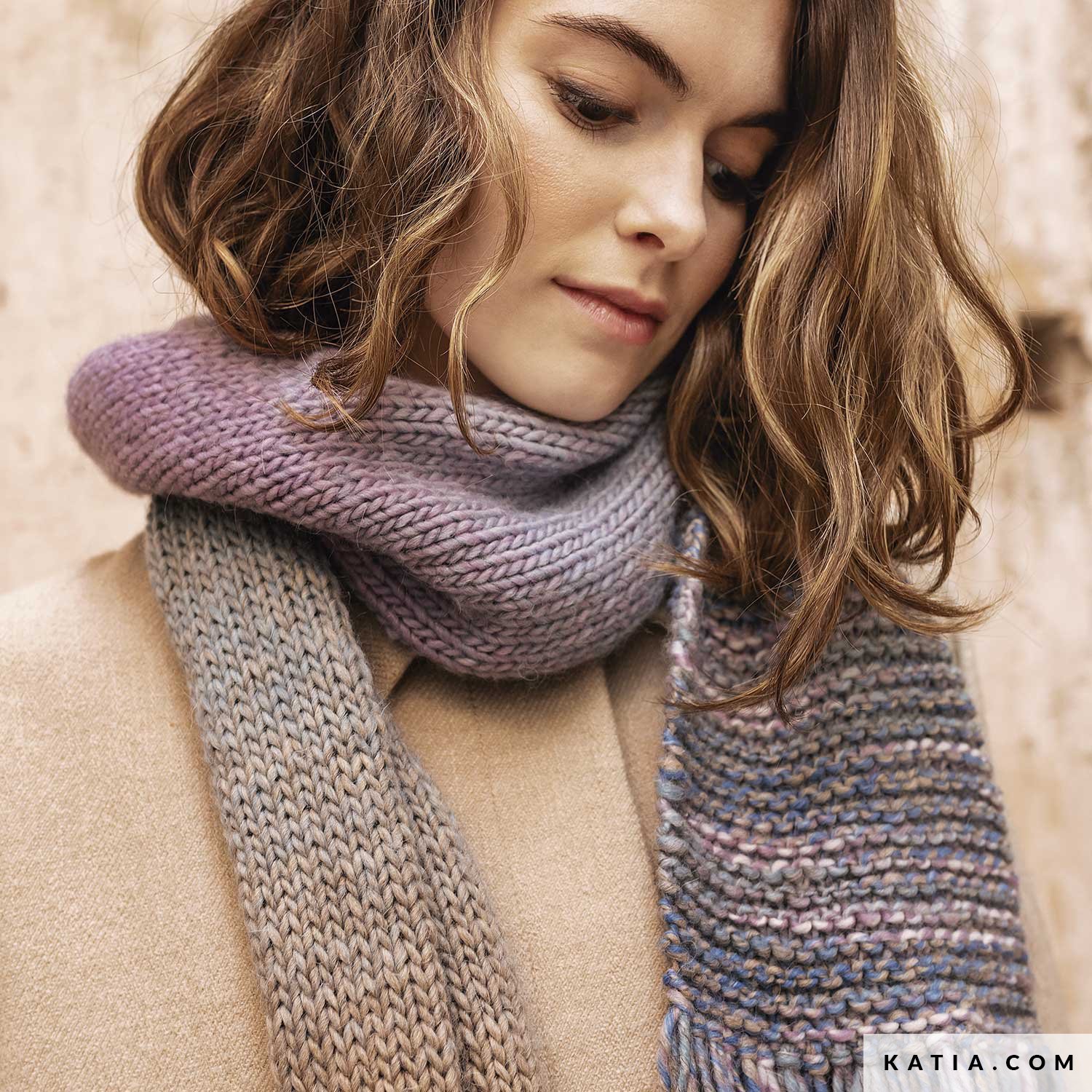 Juega con las opciones de colores combinables que te ofrece el dúo Savana Degradé y Savana Mouliné. Teje una bufanda sencilla con la que relajarte en casa mientras ves una serie o tomas un té calentito. ¡Porque, a veces, queremos cero complicaciones y un resultado de 10! Completa tu nueva bufanda con largos flecos que siempre dan movimiento y un efecto visual de mayor longitud.