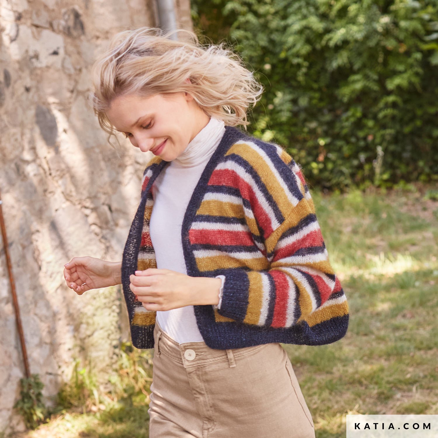Patrón de punto cárdigan corto de rayas en Silky Mohair