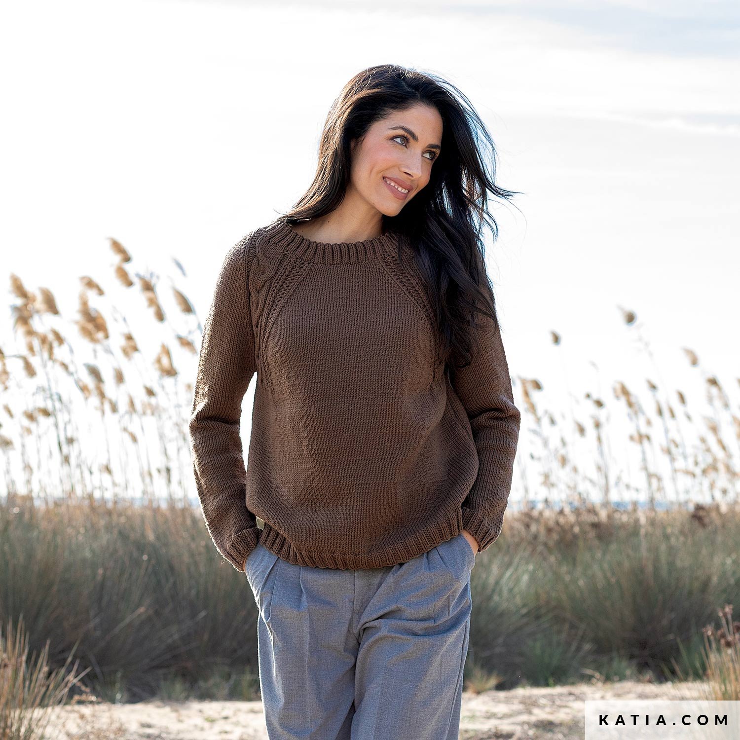 Descubre nuestro patrón de suéter de punto manga raglán en Arles Merino. Este diseño clásico a dos agujas cuenta con una sisa ranglán tejida a punto trenzado y punto calado, lo que lo hace único y atemporal. Ideal para cualquier ocasión, desde la oficina hasta un día de aventura en la naturaleza. Disponible en PDF y en la revista Katia Essentials 114. ¡Teje tu propio suéter con la lana francesa Katia Arles Merino!
