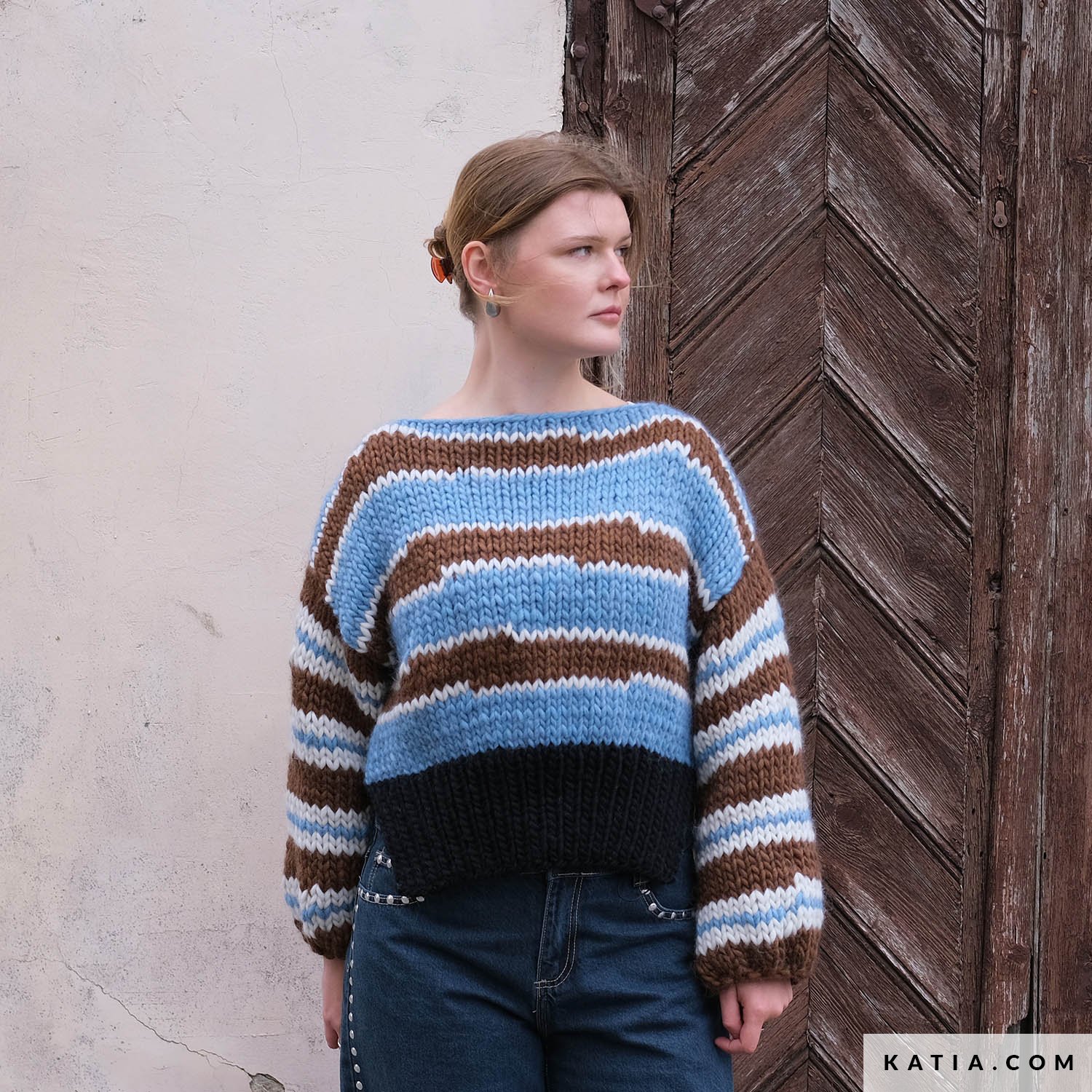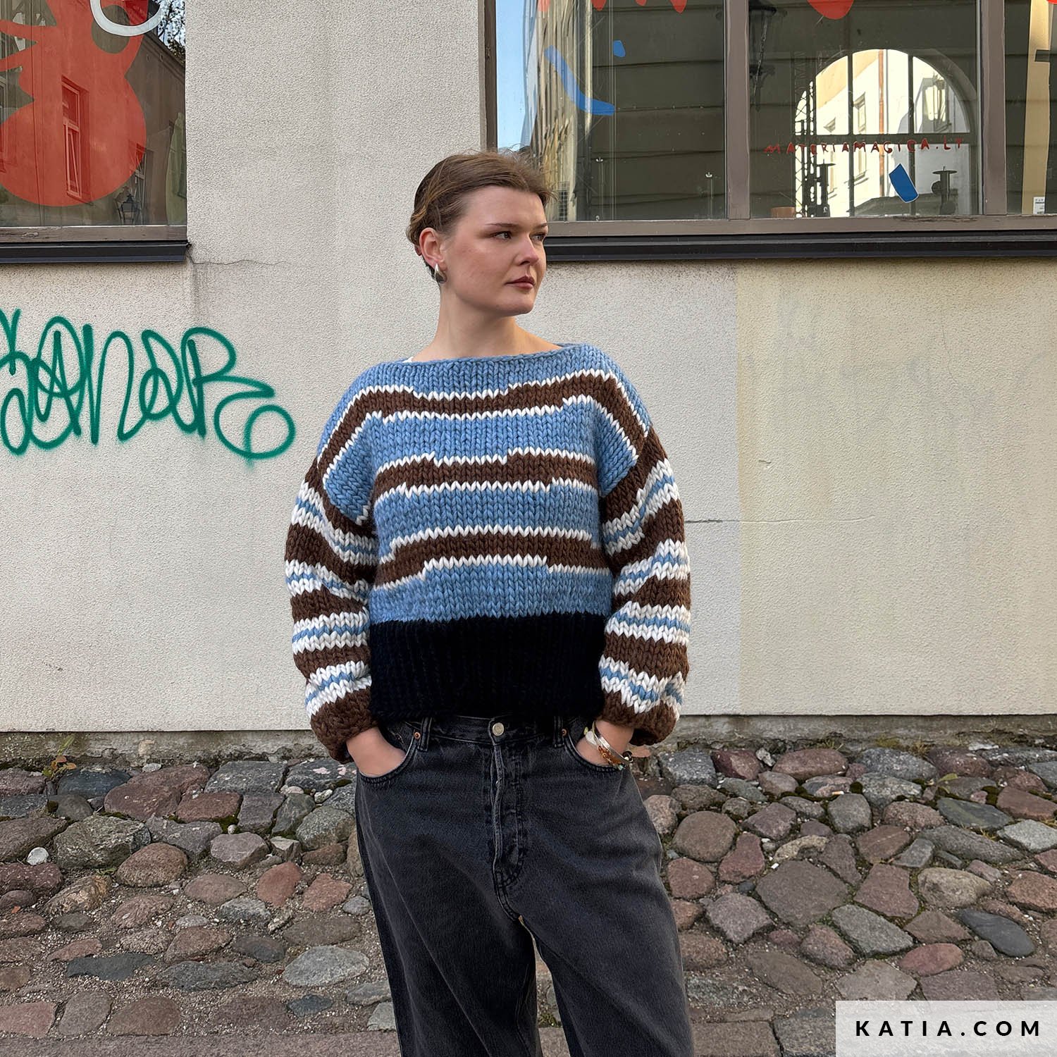 Linh Sweater es un jersey chunky, oversized y con manga abullonada que no pasa desapercibido. Diseñado por Vicky Knits y tejido con Katia Love Wool, este patrón combina comodidad con un diseño minimalista y favorecedor.
