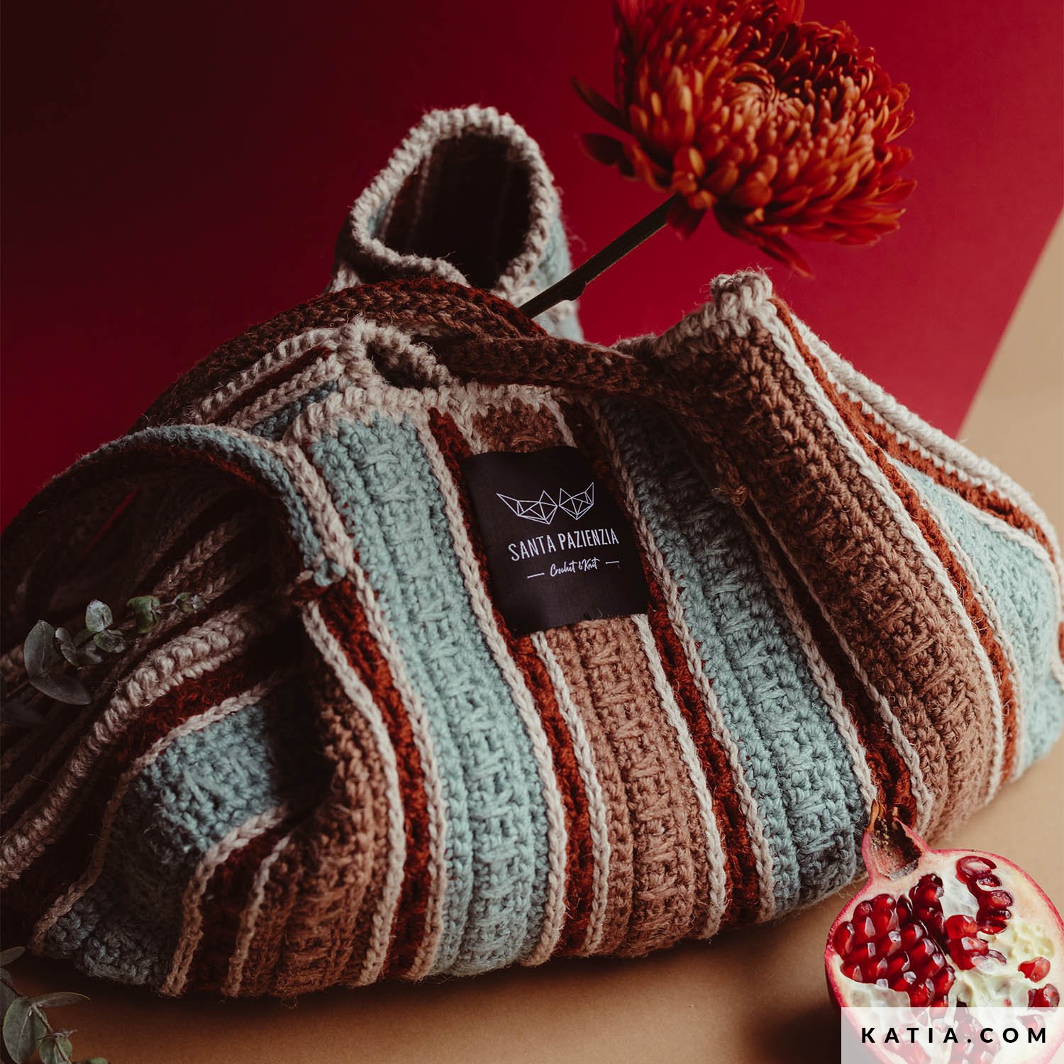 Tamarindo es la tote espaciosa y práctica que todas las crocheteras buscan: amplia, resistente y con un juego de rayas verticales en cuatro colores que marca un estilo fresco y actual. Forma parte del ebook Vegan Bags Collection by SP, una propuesta de Santa Pazienzia para tejer con calma y a conciencia.
