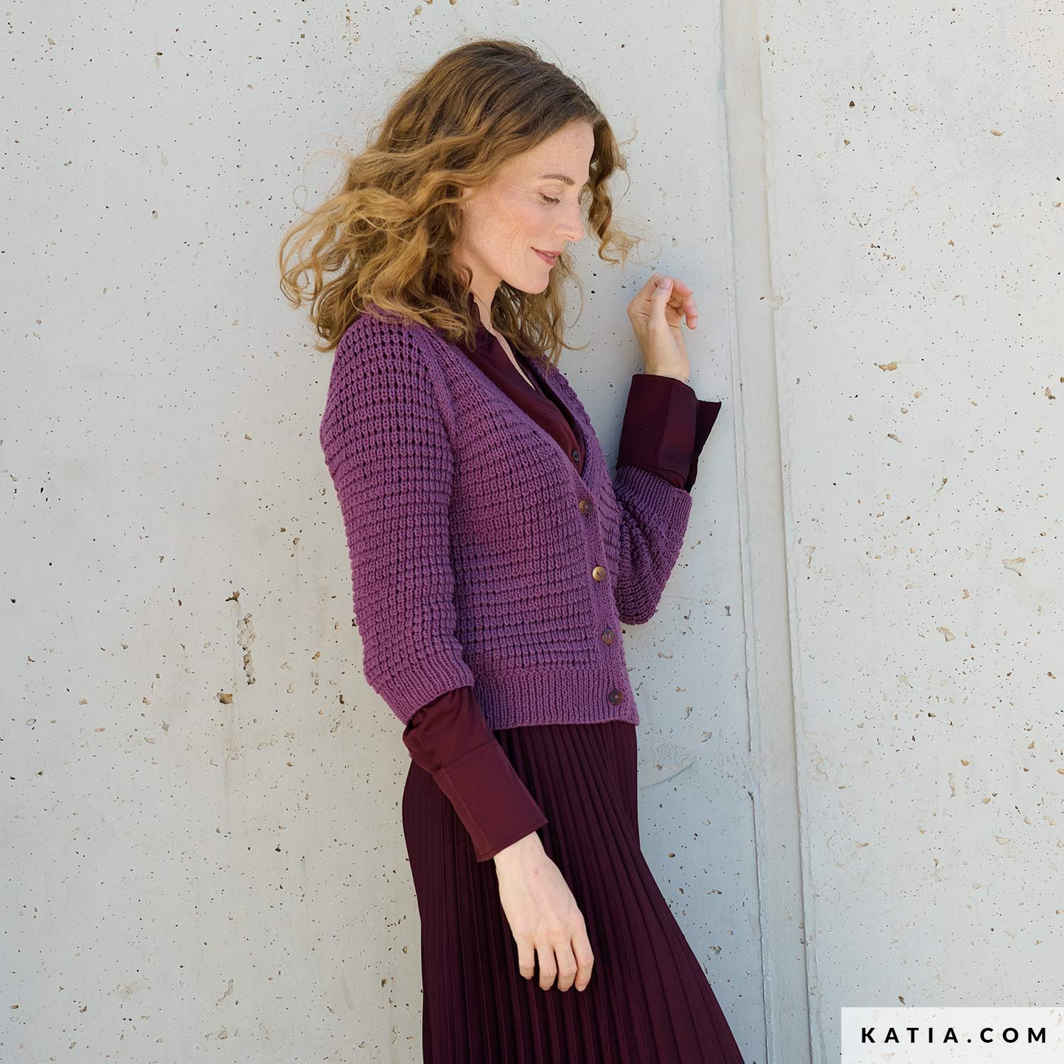 Un diseño limpio, favorecedor y que combina con todo. Teje esta chaqueta de punto bottom-up, desde abajo hacia arriba con agujas circulares, con cuello V, corte recto y un precioso punto en relieve que le aporta carácter a la vez que estilo. Con el hilo Concept Cotton-Camel, consigue una prenda duradera, suave y única. Puedes encontrar el patrón en All Seasons 7 o descárgalo en PDF en katia.com. Monta los primeros puntos de este patrón hoy mismo y disfruta del placer de crear con tus manos.
