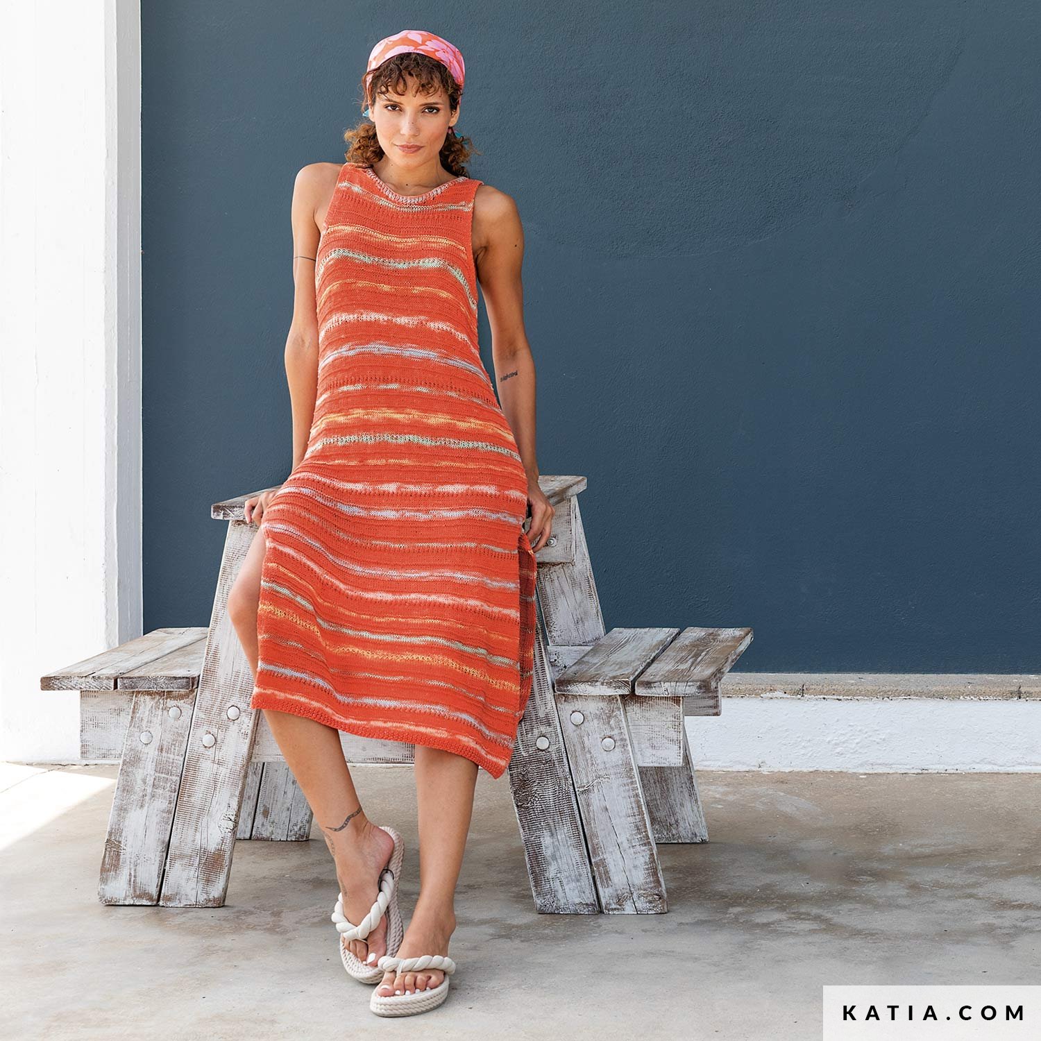 El vestido largo de la revista Casual 116 es una opción fresca y estilosa para los días calurosos. Con grandes aberturas laterales y tejido a dos agujas, este diseño es cómodo y a la moda. Tejido con Katia Paraiso, un hilo de algodón 100% en colores alegres y veraniegos, este vestido cuenta con un escote redondo y sin mangas. Con diferentes puntos, punto relieve y calados, este espectacular y alegre vestido es imprescindible en tu guardarropa de verano. ¡Comienza a tejer este hermoso patrón ahora mismo!