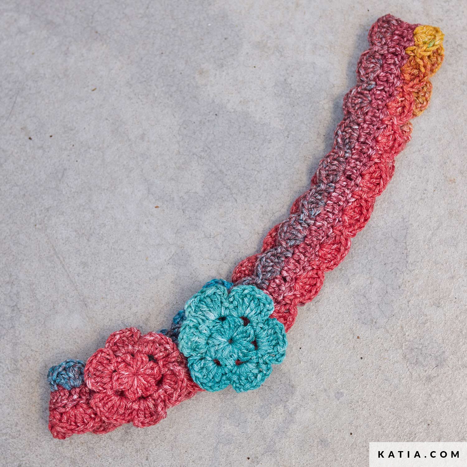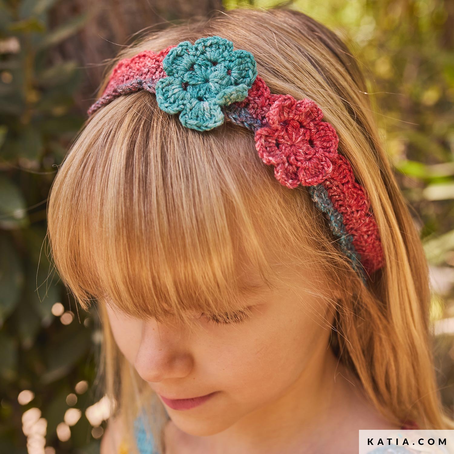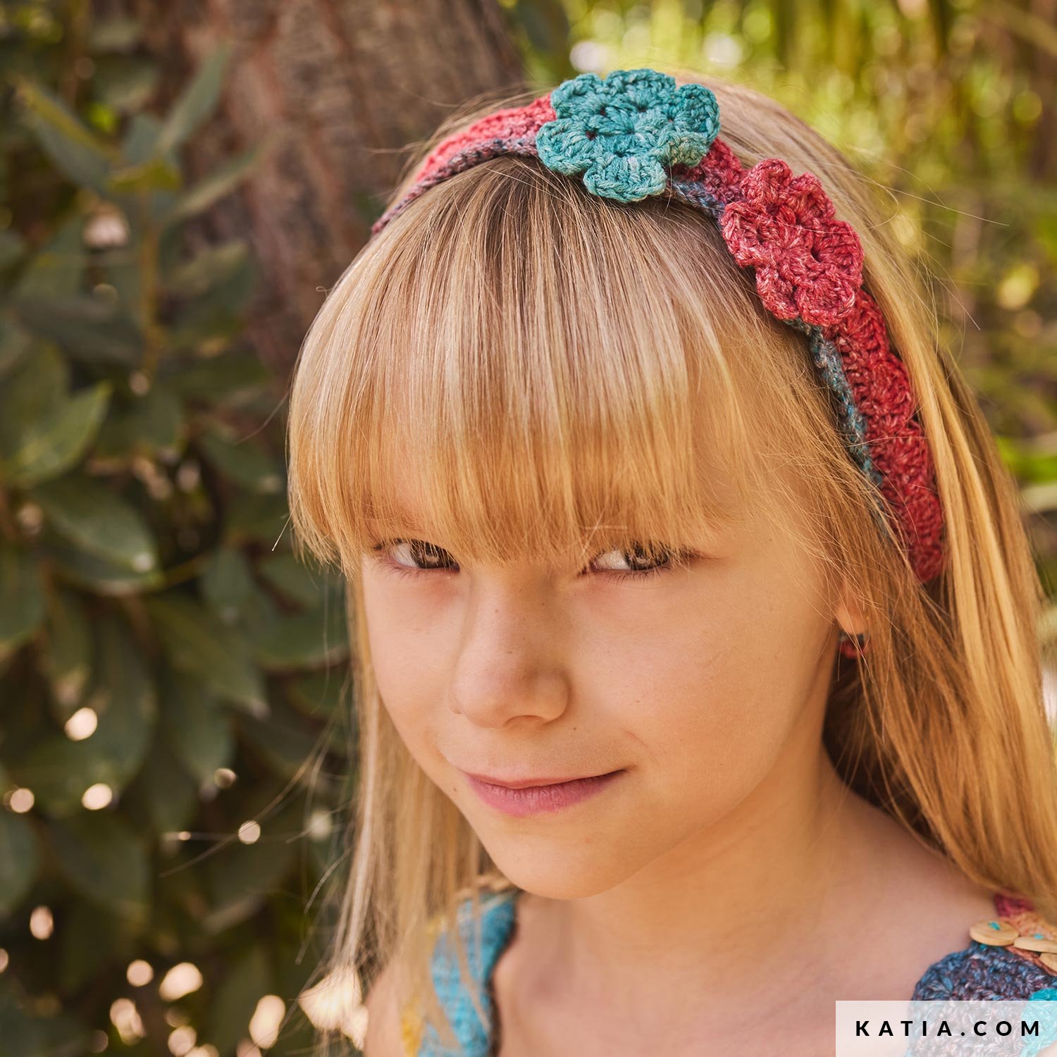 Completa el conjunto veraniego de tu hija con este patrón de diadema a ganchillo hecho con Katia Fair Cotton Stretch, un algodón orgánico elástico. Luce flores multicolor y un práctico cierre con botón para ajustarla fácilmente.. Ideal para aprovechar el resto del ovillo del peto a juego. Disponible en la revista Katia Niños 117 y en PDF en katia.com. Disfruta creando un accesorio divertido para tu peque.