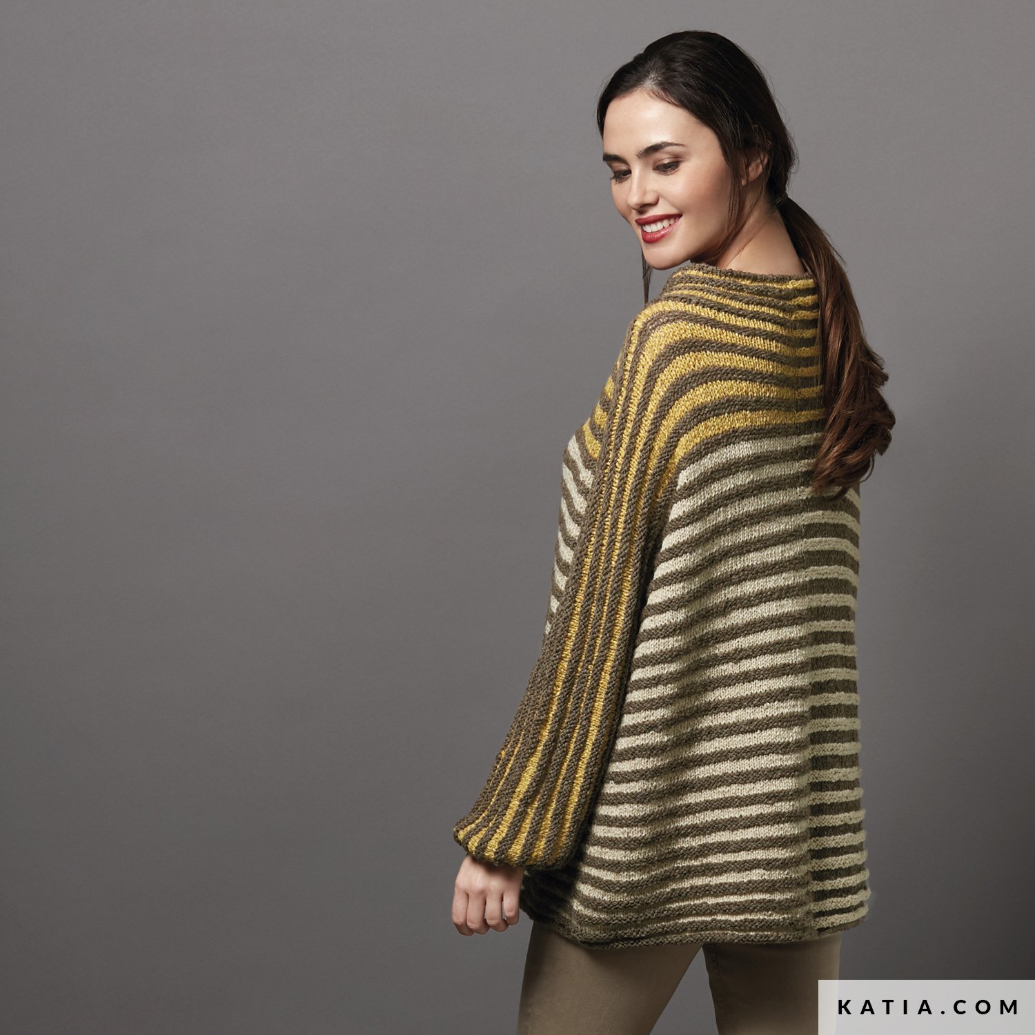 Jersey de mujer oversize de rayas con mangas abullonadas.
