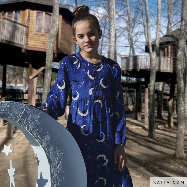 Tela de viscosa eco responsable, sus fibras se obtienen a partir de madera y celulosa sostenibles, de fuentes certificadas. El tejido de viscosa Ecoviscose Cats & Moon de Katia Fabrics es una tela con un aspecto y tacto similar a la seda. Su suavidad, su ligereza y su bonito estampado de gatos, lunas y estrellas sobre un fondo azul oscuro hará que crees prendas especiales y auténticas para ti o para tus pequeños. En la revista de patrones de costura Textures Otoño-Invierno 23/24 de Katia Fabrics tienes varios vestidos y blusas ideales para este tejido de viscosa, echa un vistazo a los patrones de costura y elige el que mejor se adapte a ti.