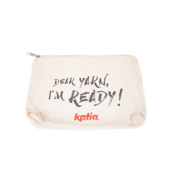 Ma chère laine, je suis prête ou prêt ! ... pour tricoter et crocheter où et quand bon vous semble grâce à cette pochette en tissu avec une fermeture à glissière. Mettez-y vos aiguilles, vos crochets ainsi que tous les accessoires Katia dont vous avez besoin pour tricoter et crocheter. Sur l'un des côtés de la pochette, on peut lire Dear Yarn, I'm ready et de l'autre, le logo de Katia 100% You. Dimensions : 25 x 17 x 0,5 cm / Poids : 10 gr