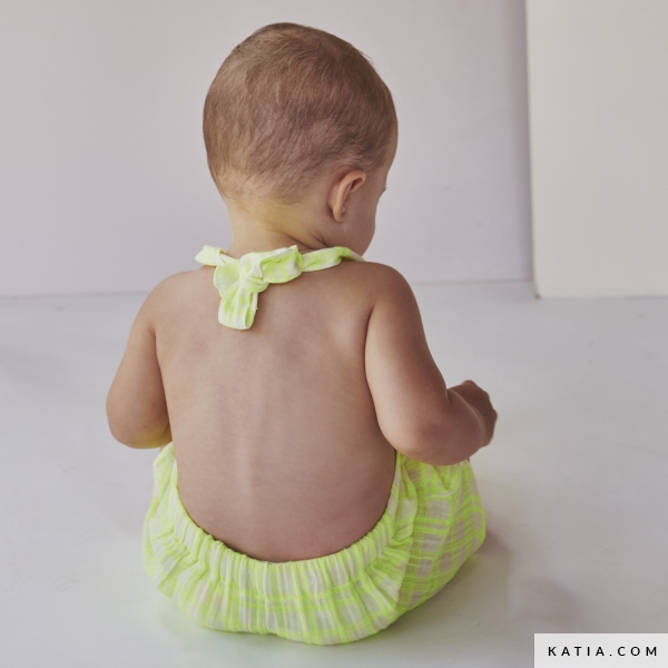 Le moment de coudre des vêtements légers pour l'été est arrivé ! Comme ce patron de couture de barboteuse pour bébé avec une poche sur le devant et des bretelles croisées dans le dos que vous trouvez dans le magazine de couture Travel Postcards Printemps-Été 24 de Katia Fabrics. Le dos de la barboteuse est froncé pour plus de confort pour votre bébé. De plus, les bretelles sont réglables grâce aux boutons pour une adaptation parfaite. Cousez cette barboteuse avec du tissu en popeline ou les nouvelles mousselines dans des tons fluo, un tissu doux et agréable au toucher, idéal pour les vêtements de bébé et d'enfant.