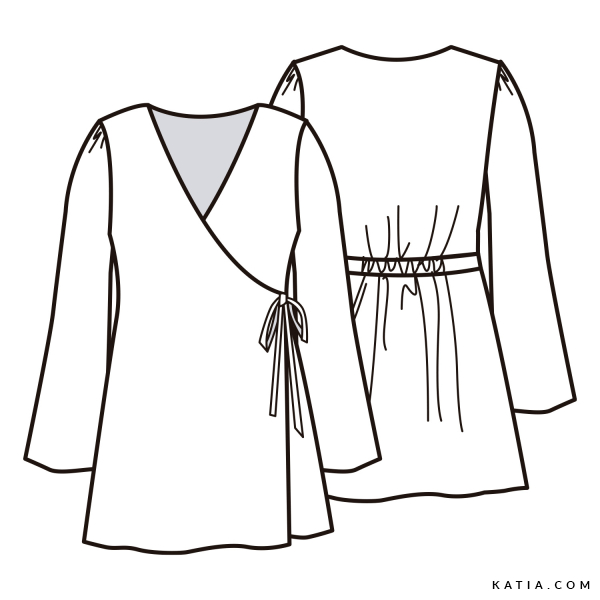 Le patron de couture du cache-cœur pour femme de Katia Fabrics se caractérise par un design élégant avec un joli décolleté en V, des manches longues et une ceinture latérale qui affine la silhouette. Un vêtement versatile que vous pouvez coudre dans des tissus doux et fluides comme la viscose, le satin ou un coton léger – à porter avec un pantalon ou une jupe en toute occasion.