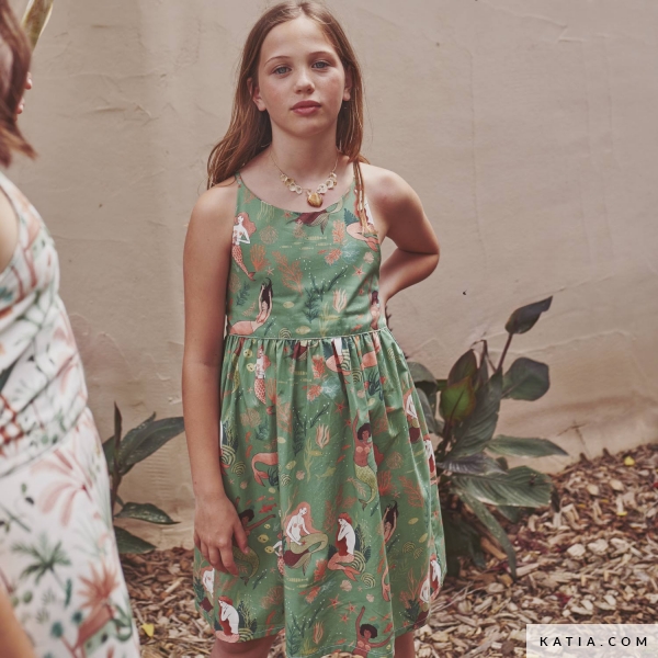 Souhaitez la bienvenue à l'été grâce à ce patron de couture de robe à bretelles croisées dans le dos et jupe froncée du catalogue de patrons de couture Travel Postcards Printemps-Été 2024 de Katia Fabrics. Cette jolie robe croisée dans le dos est un ouvrage idéal pour les débutants en couture, car les explications détaillées et illustrées pas à pas vous permettre de la coudre facilement. Pour la confectionner, nous vous recommandons d'utiliser nos tissus en coton : apprenez à coudre facilement cette jolie petite robe et créez un vêtement léger et confortable pour l'été !