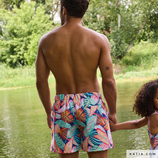Découvrez ce patron de couture pour homme versatile, un design conçu pour coudre à la fois un short décontracté et un maillot de bain pour homme. Le modèle de Katia Fabrics présente une taille élastiquée avec un cordon ajustable et une poche arrière, alliant confort et style en toute occasion. Réalisez-le en jersey extensible pour un short sportif, ou en tissus techniques pour maillots de bain à séchage rapide de Katia Fabrics pour le transformer en un maillot moderne et pratique.