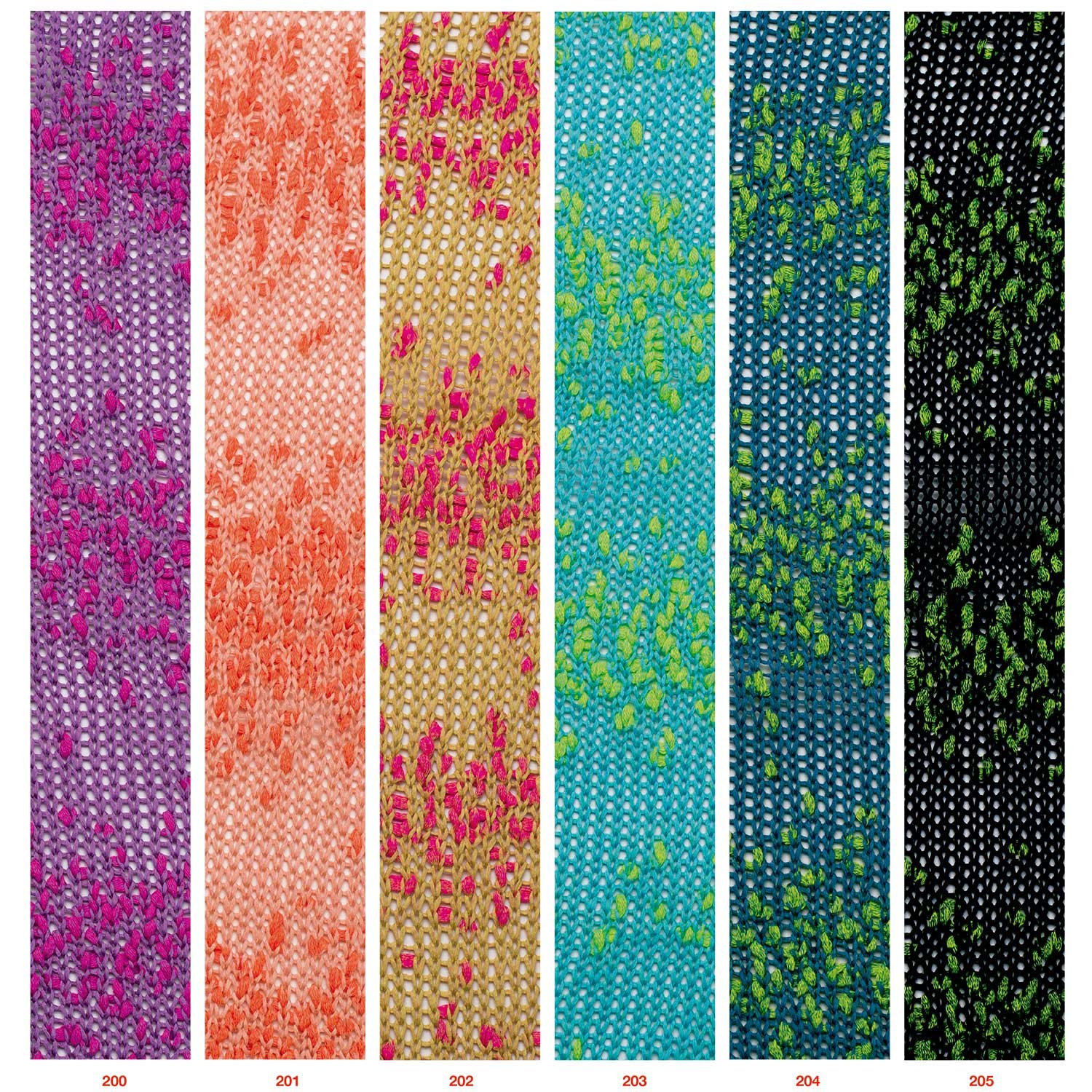 Ruban en coton. Couleurs vives et points de couleurs fluo. La touche jaspée de ce fil marque toute la différence. Un fil idéal pour des vêtements légeres et modernes pour les plus jeunes.