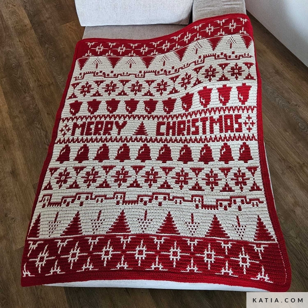 Couverture de Noël en crochet mosaïque avec un message personnalisé.