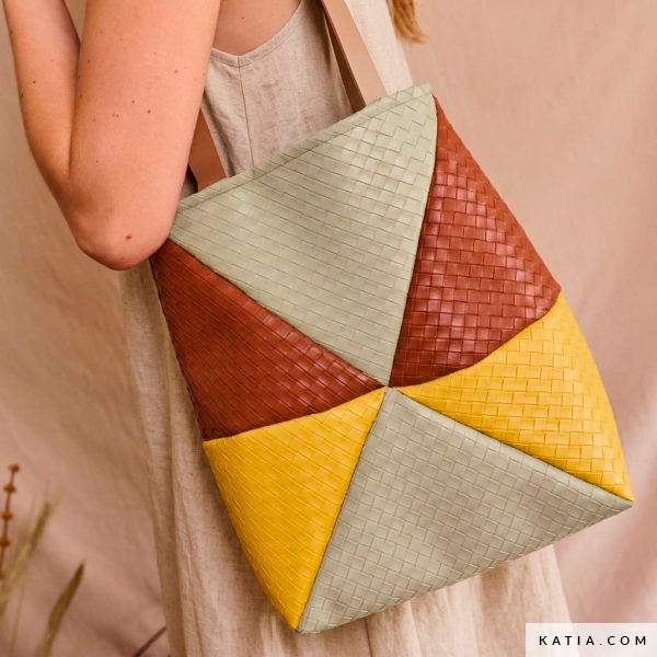 Cousez un tote bag composé de différentes pièces géométriques (modèle CHAWPI) avec notre tissu Hamper PU Leather texturé, résistant, souple et facile à coudre avec une machine domestique. Niveau : débutant–intermédiaire.