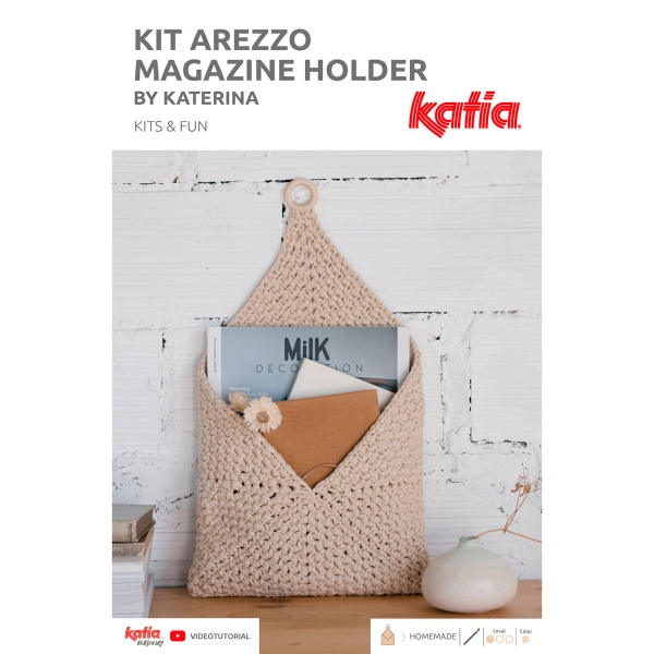 Nous voulons que vous appreniez et que vous vous amusiez avec les Kits & Fun Happy Summer. Pour cela, nous vous proposons des idées de décoration pratiques et contemporaines comme ce porte-revues mural en crochet. Grâce au kit Arezzo, ByKaterina vous propose de crocheter un porte-revues suspendu en forme d'enveloppe. Le Kit Arezzo comprend des pelotes Homemade, un crochet, un anneau en bois, une aiguille à tapisserie et un dépliant imprimé ainsi qu'un code QR pour accéder à une vidéo expliquée pas à pas.