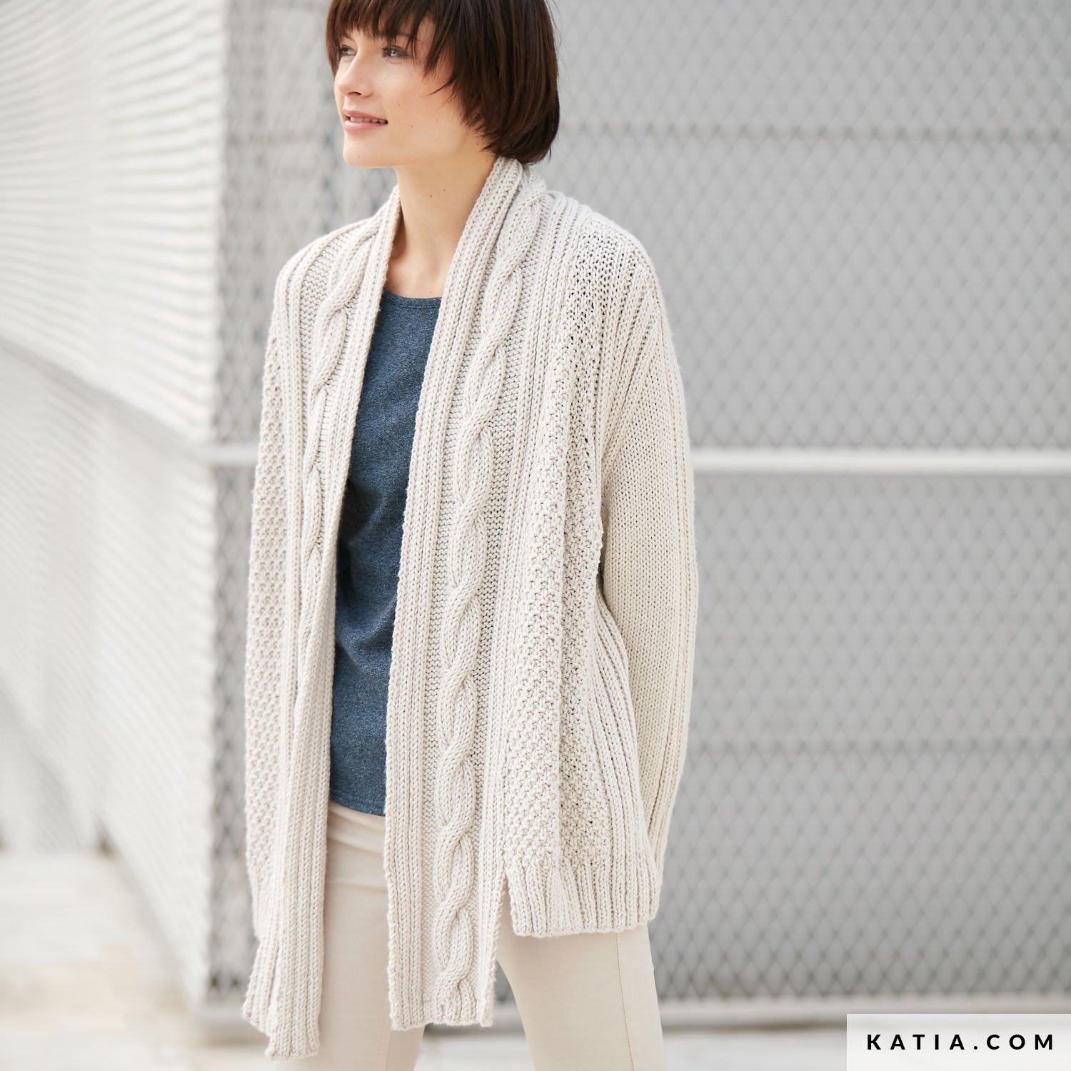 Jolie veste aux revers torsadés pour femmes, à tricoter