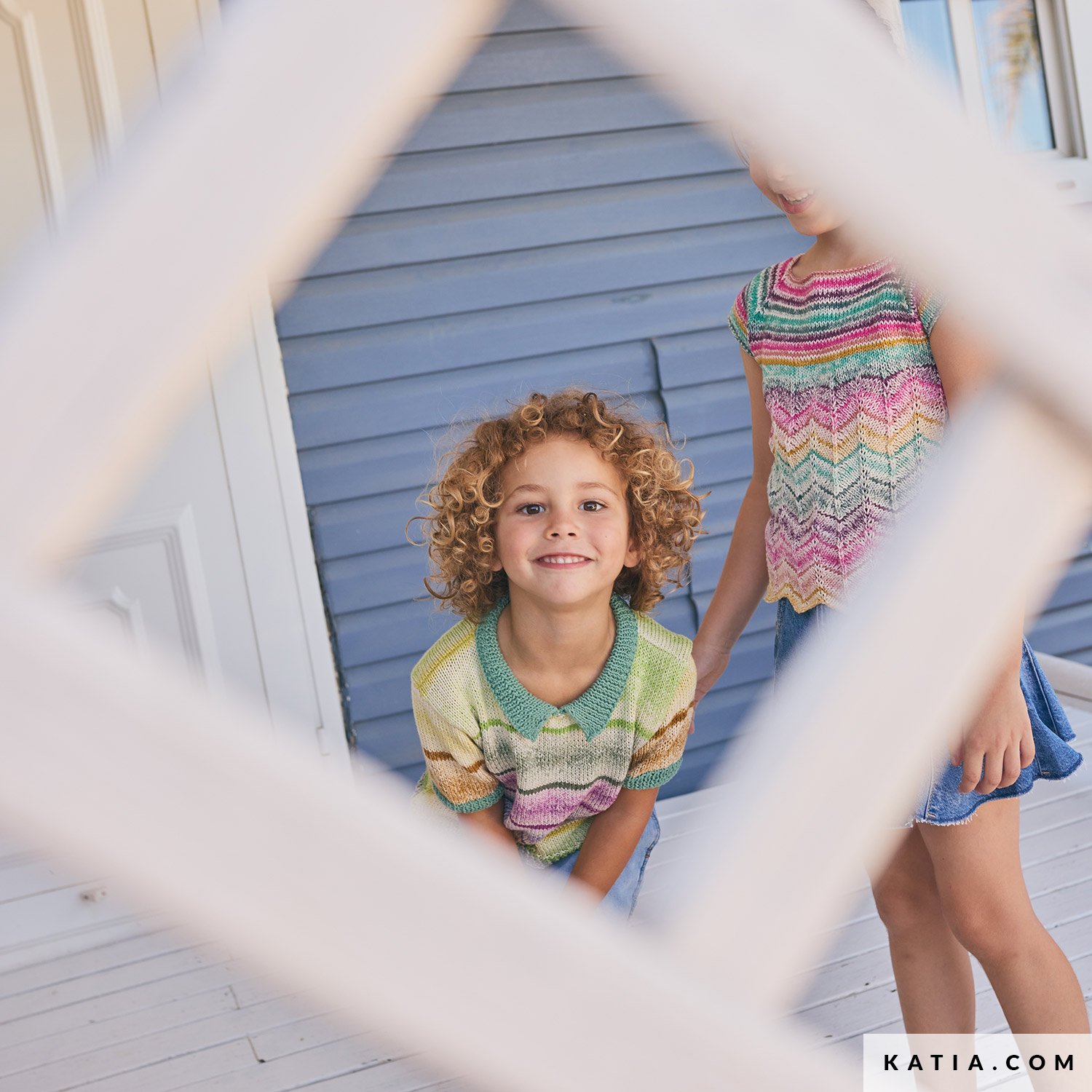Un modèle de pull à courtes manches tricoté en Katia Fair Cotton Arlequino et Katia Fair Cotton. L’effet de couleur à cycle parfait de Katia Fair Cotton Arlequino crée de jolies rayures sur tout le corps, tandis que le col chemise uni apporte une note de contraste. Disponible dans le catalogue Katia Enfant 117 et en PDF sur katia.com. Tricotez une pièce douce, colorée et durable pour cet été.