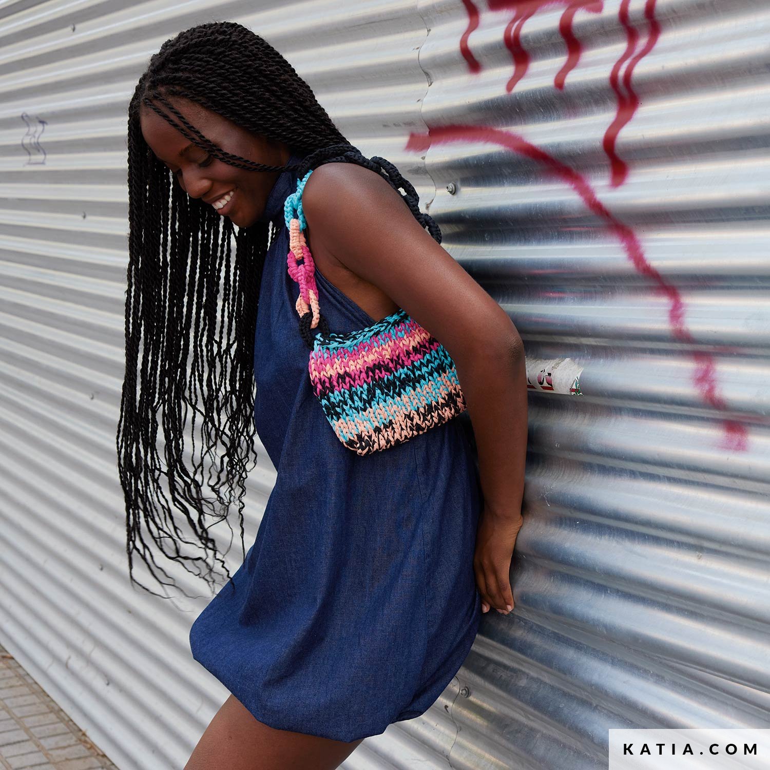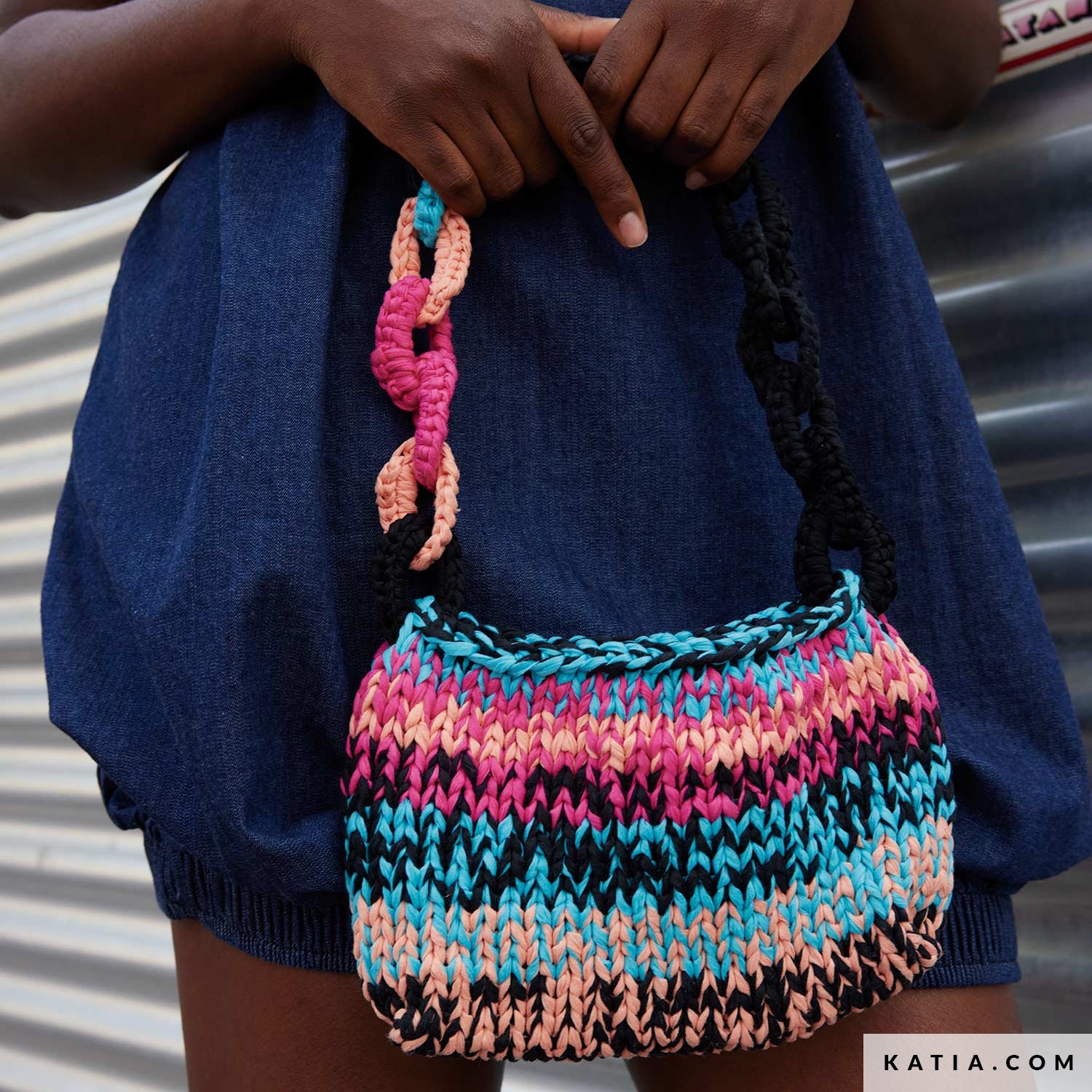 Un modèle tricot de sac à main multicolore, pensé pour ajouter de la texture et du style à n'importe quel look. Il se fait en mélangeant plusieurs couleurs de WOW Rewashi, un fil plus consistant et avec plus de tenue, qui donne un point bien défini et régulier. La touche WOW : une anse de type chaîne au crochet, pour une finition moderne et amusante. Modèle disponible en PDF sur katia.com et dans le catalogue Bag to Basics. Choisissez vos coloris préférés de la gamme WOW Rewashi, créez une pièce unique et personnalisée, 100 % WOW.