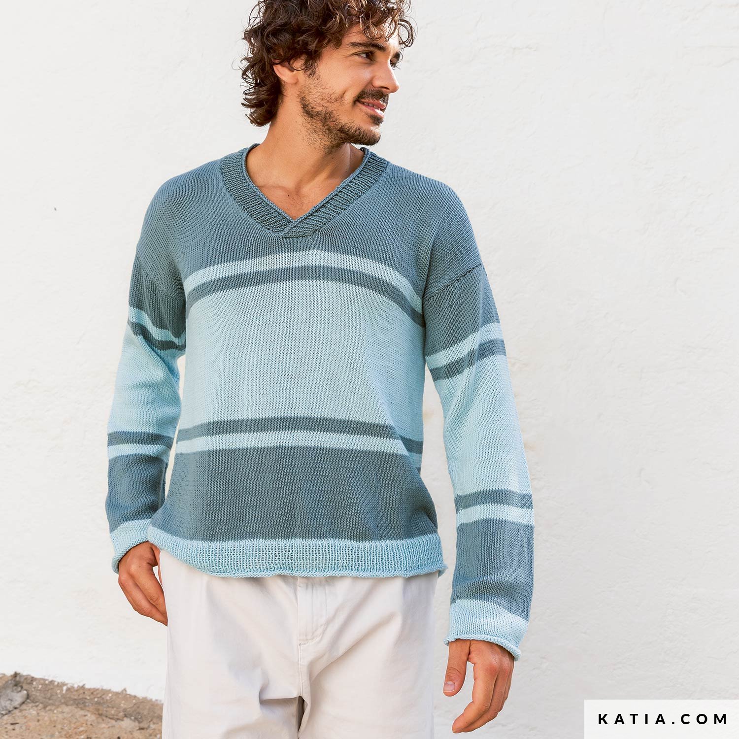 Pull à lignes droites et col V Easy Jacquard