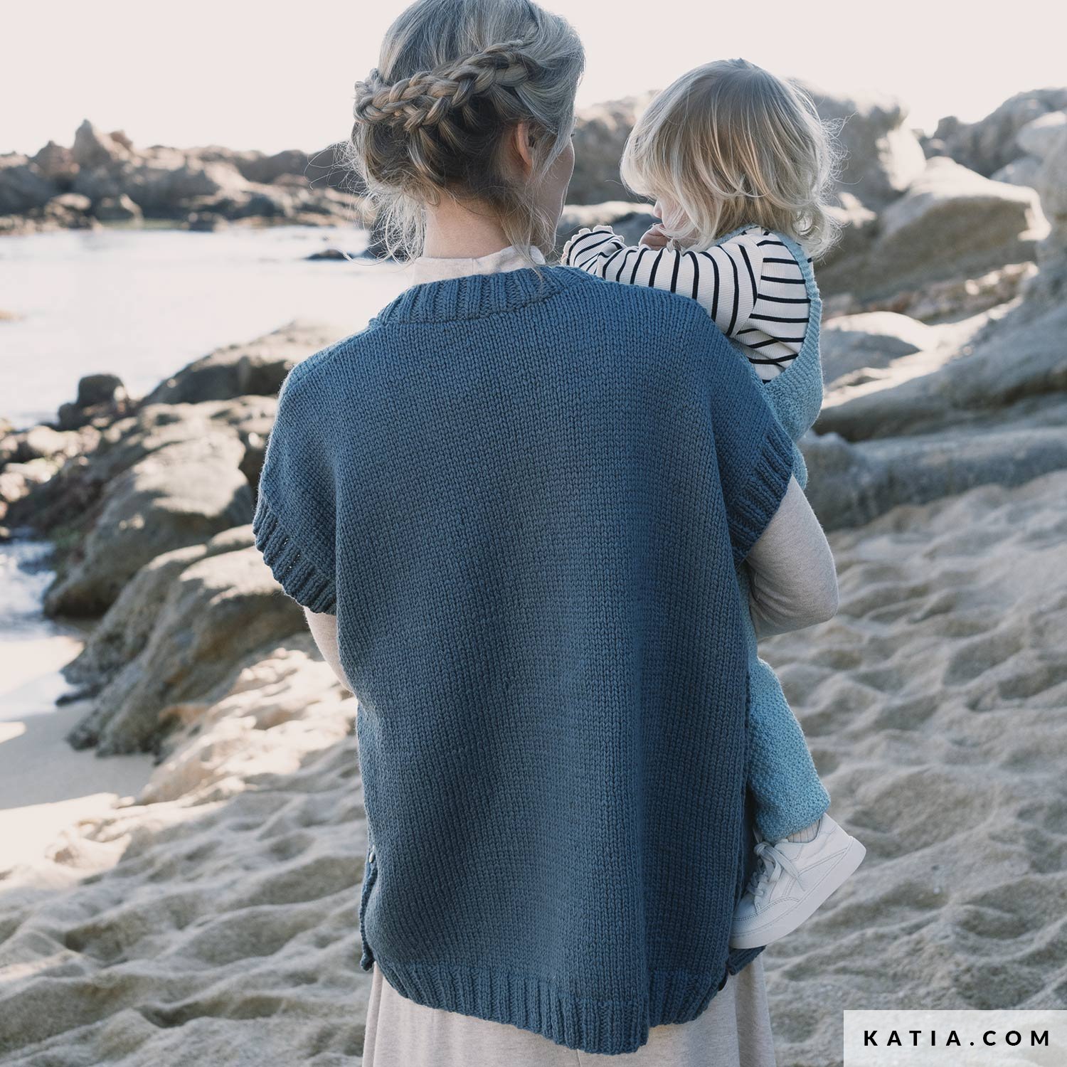Anleitung, um eine Oversized-Weste aus Pure Organic Wolle mit V-Ausschnitt und 5 Knöpfen im Vorderteil und 3 Knöpfen auf jeder Seite zu stricken. Im Vorderteil werden außerdem 2 große, diagonale Zöpfe gestrickt, die eine zusätzliche Lebendigkeit bewirken. Sehr schön auch zu langen Kleidern und Röcken zu tragen.