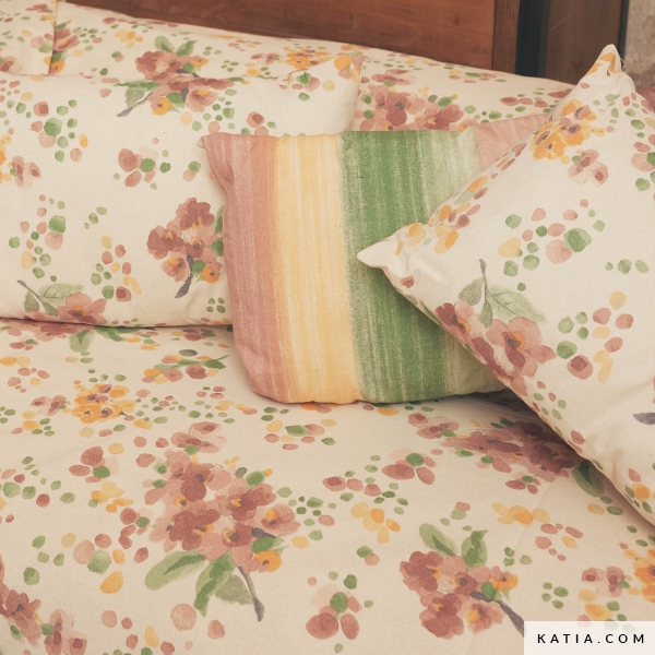 Tissu en toile recyclée au motif de fleurs peintes à l'aquarelle dans des tonalités d'orange, de marron, de jaune et de vert sur un fond couleur sable. La toile de coton Canvas Recycled Print Aquarelle Flowers de Katia Fabrics est un tissu de grande qualité, très résistant et à l'aspect naturel, ce qui le rend idéal pour la couture d'accessoires, pour coudre une nappe unique, des housses de coussin ou même de canapé pour décorer et personnaliser votre intérieur.